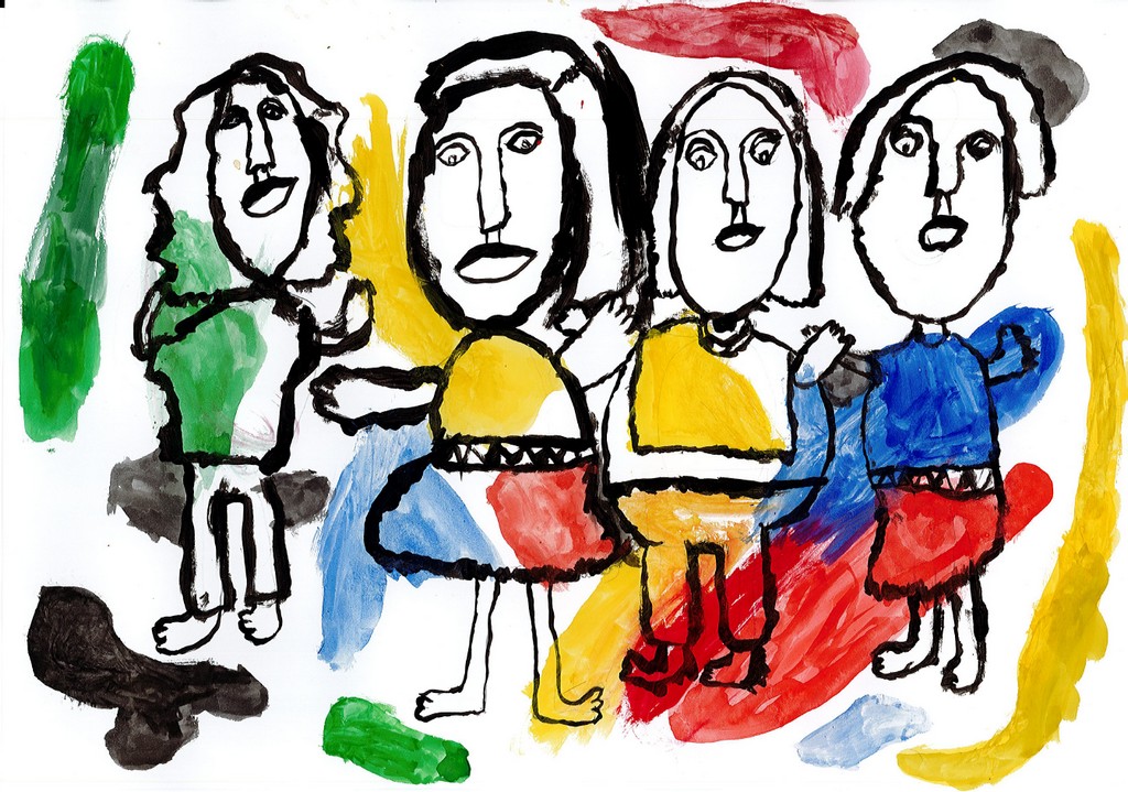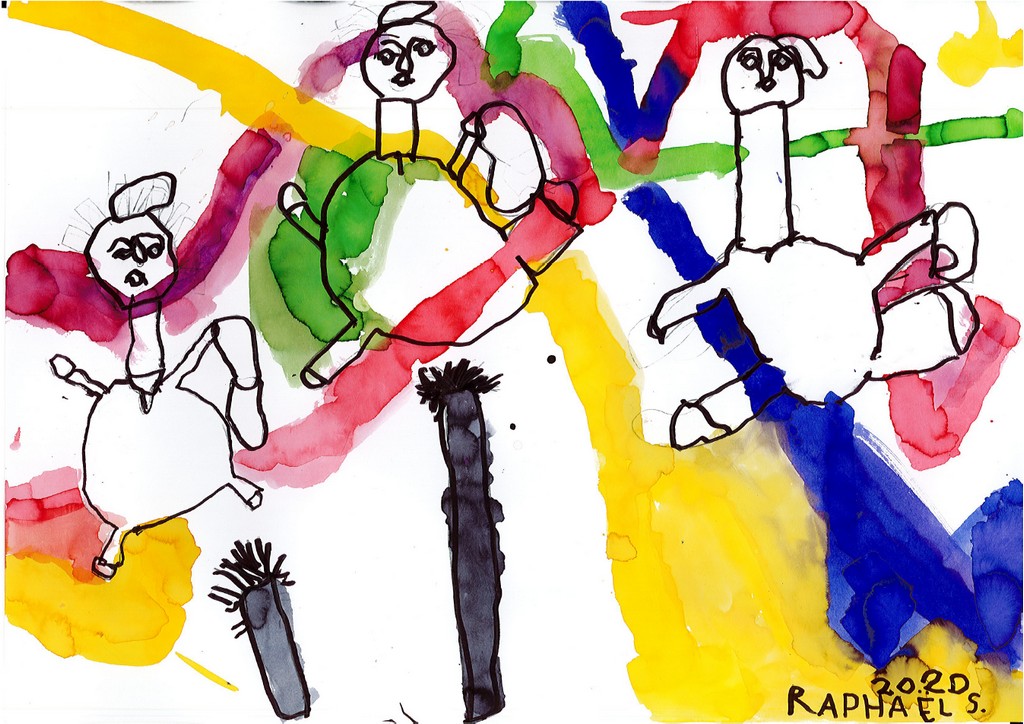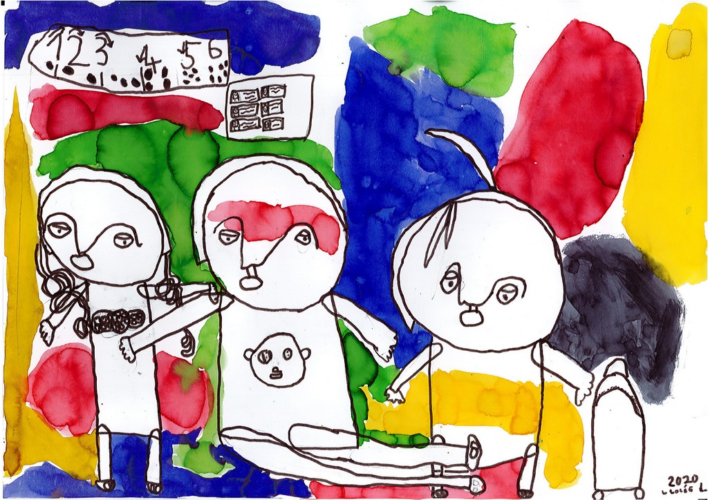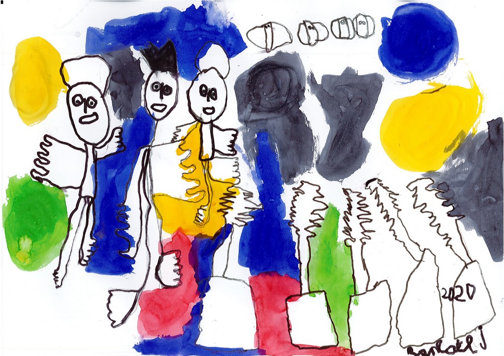 Ils ont ensuite tenté, à la manière de l'artiste, de se dessiner en compagnie de quelques camarades pour une photo de classe particulière.