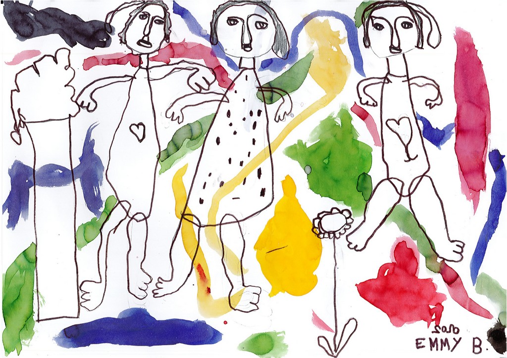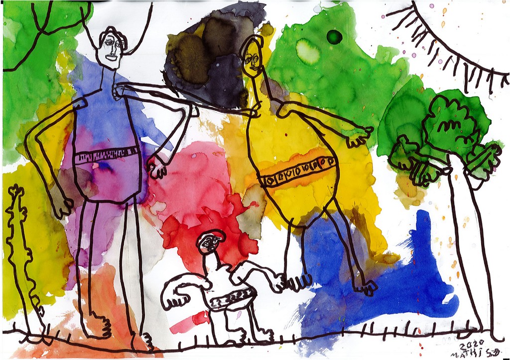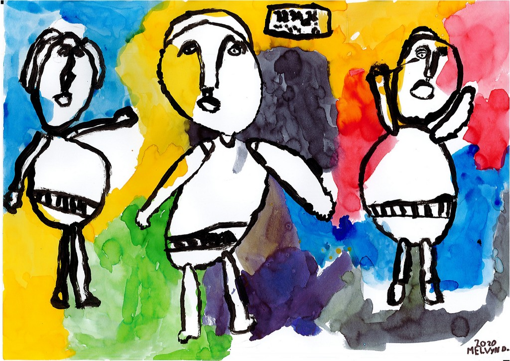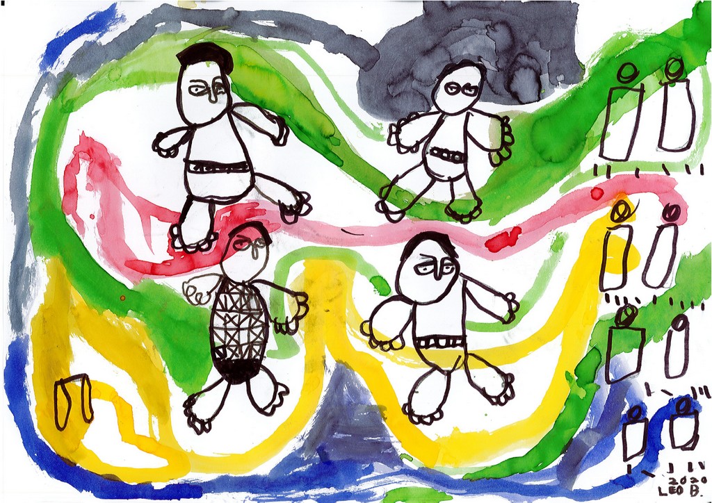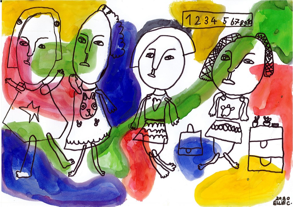 Ils ont ensuite tenté, à la manière de l'artiste, de se dessiner en compagnie de quelques camarades pour une photo de classe particulière.