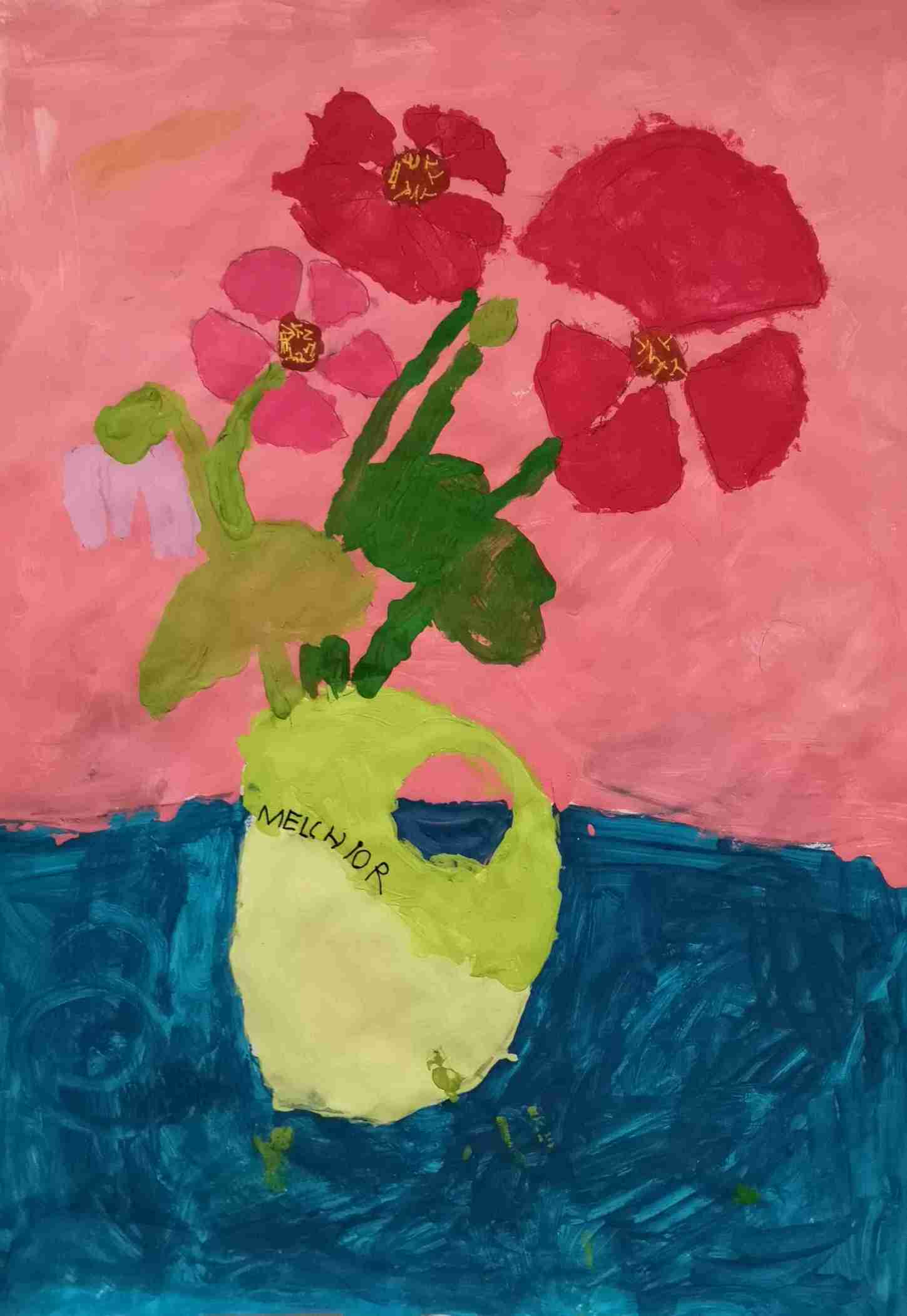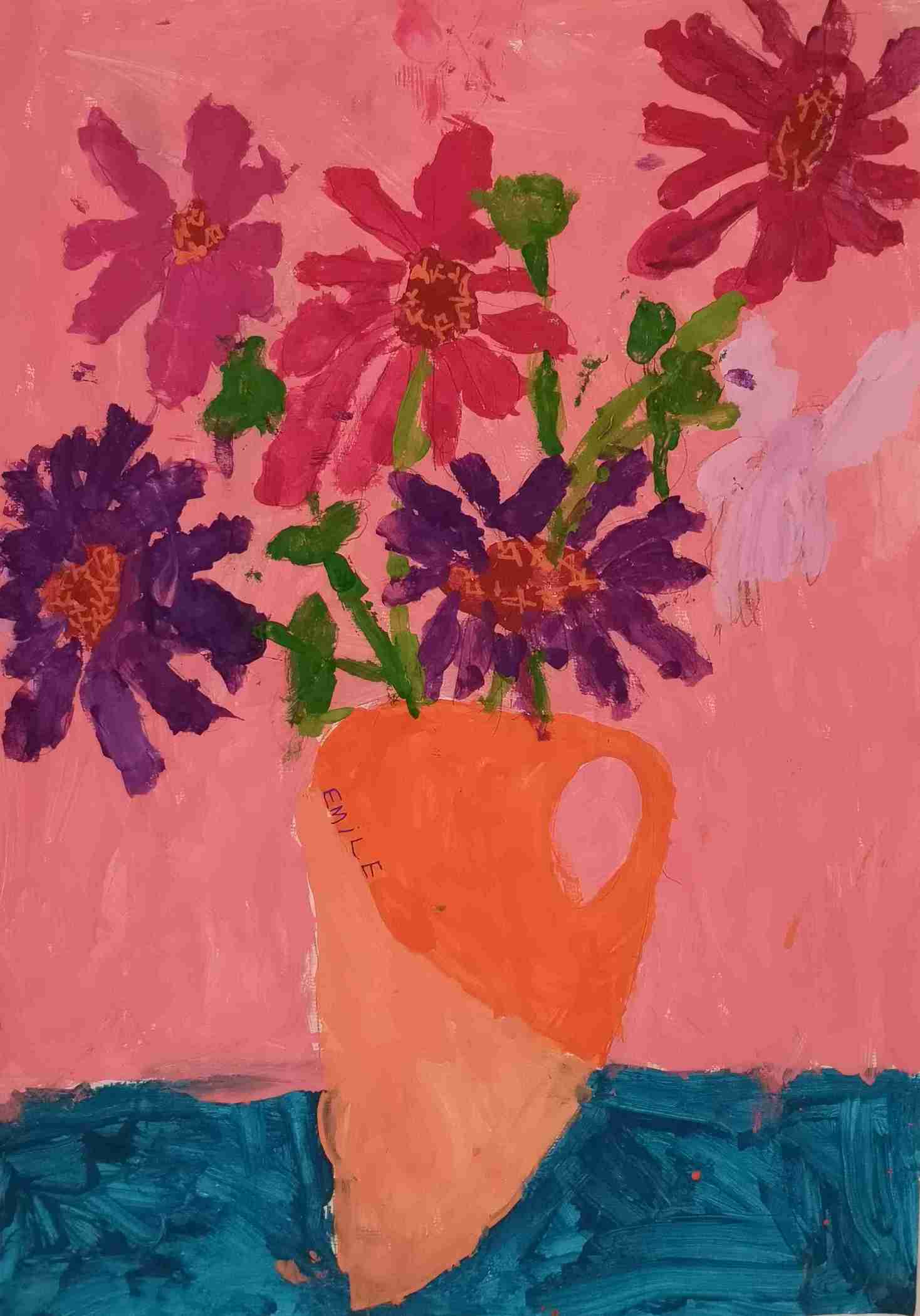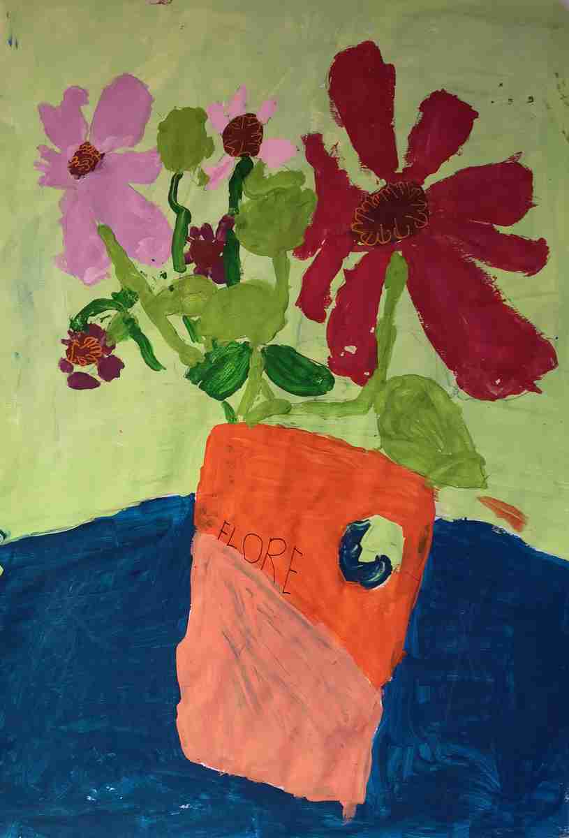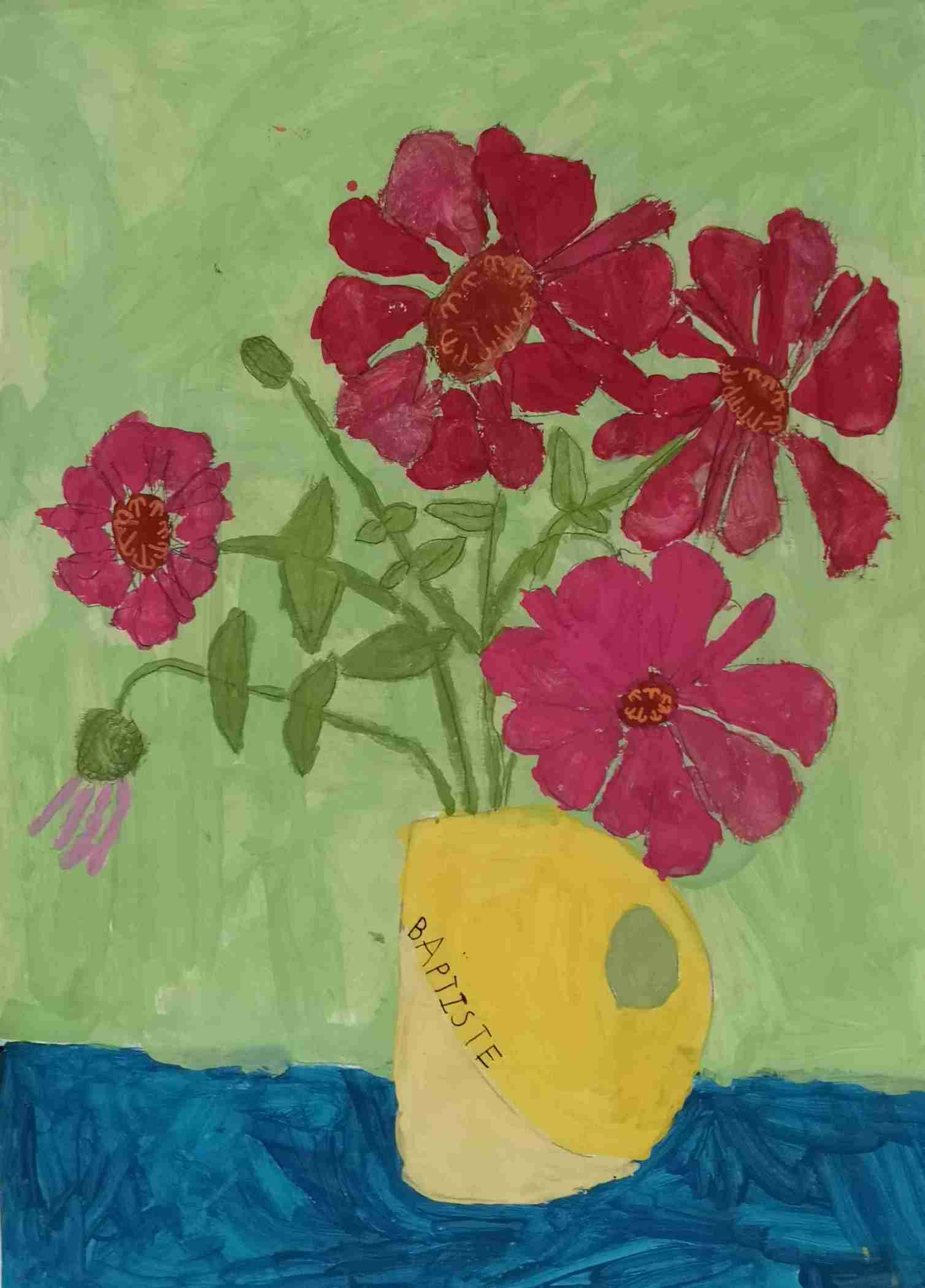 Ils s'en sont inspirés pour peindre à leur tour un bouquet de zinnias, fleurs du jardin.