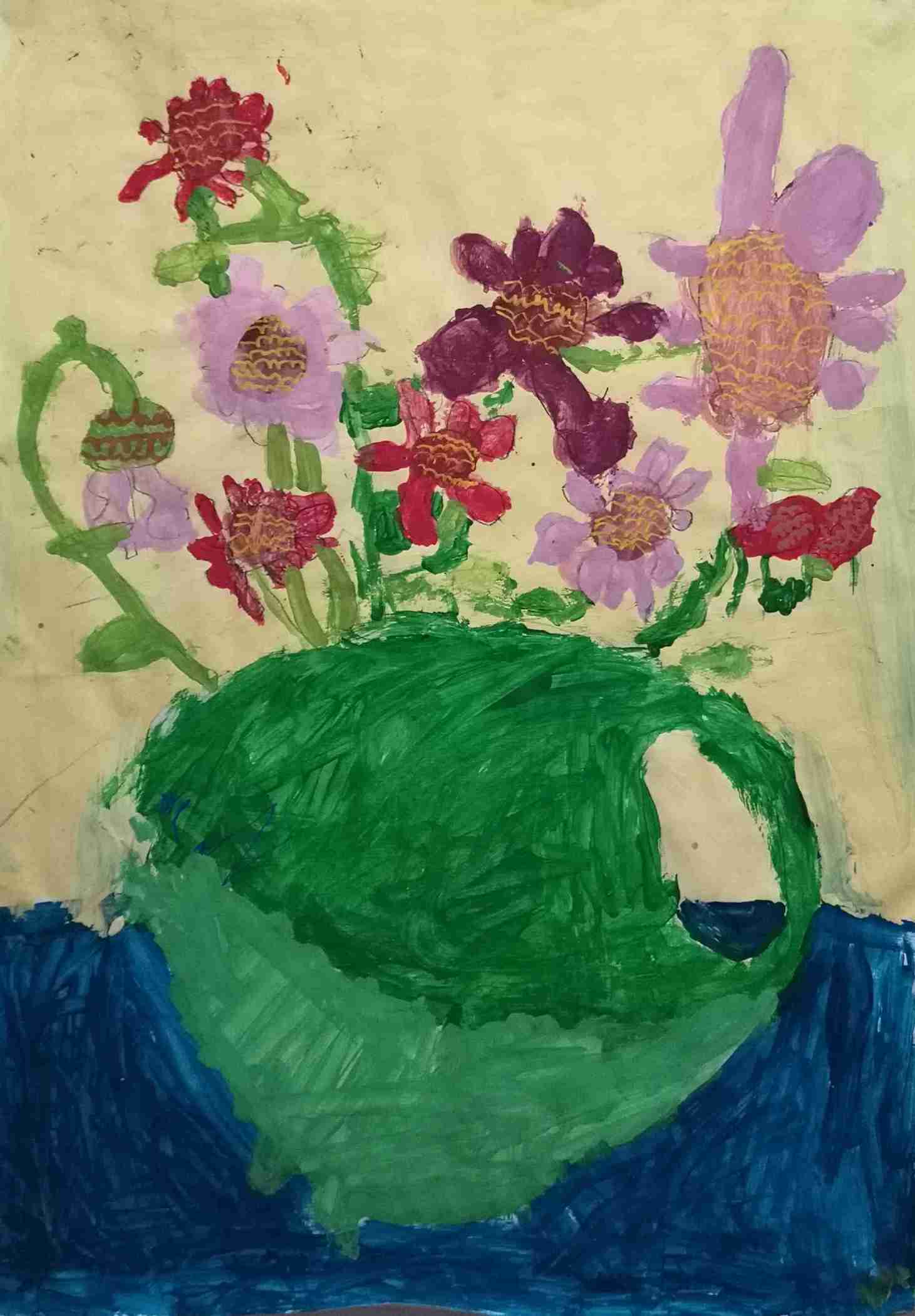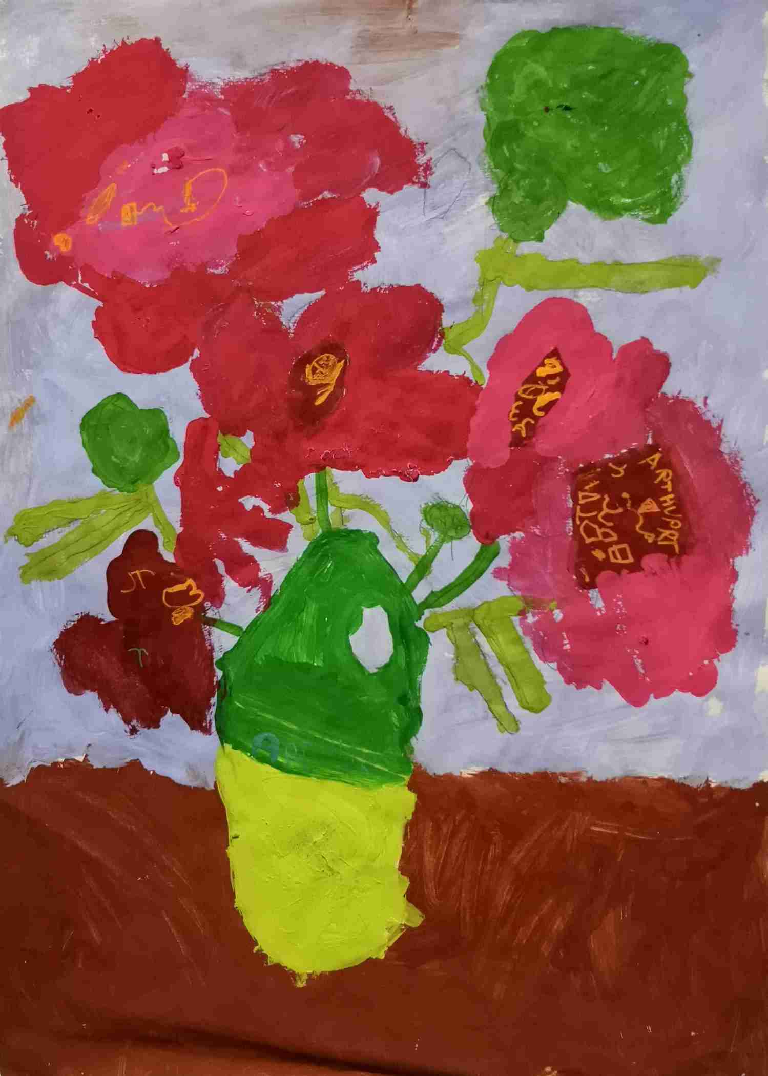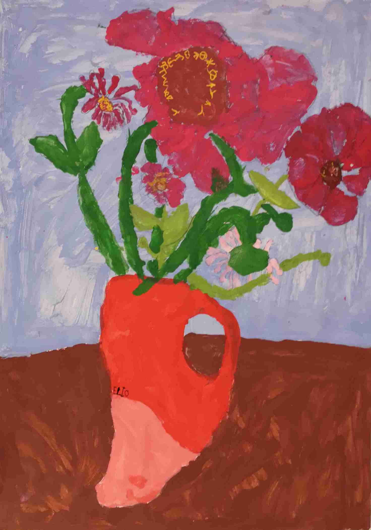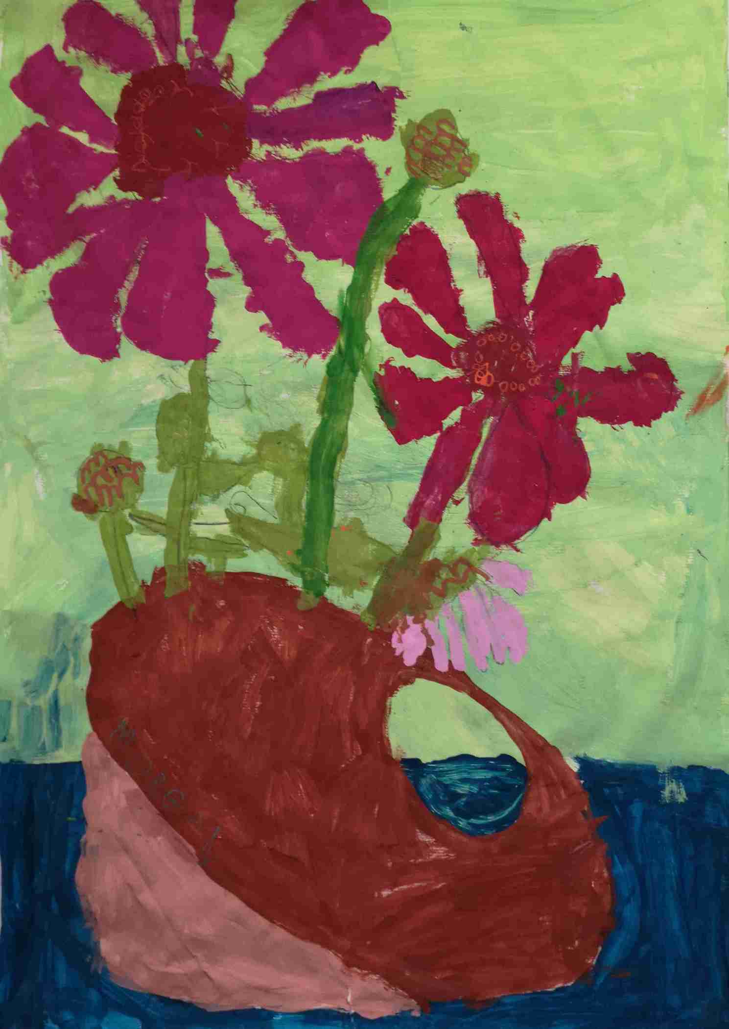 Ils s'en sont inspirés pour peindre à leur tour un bouquet de zinnias, fleurs du jardin.