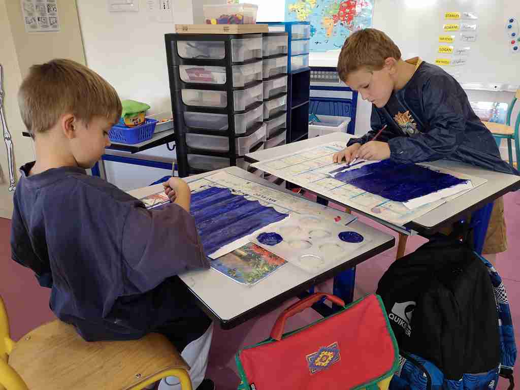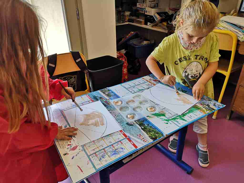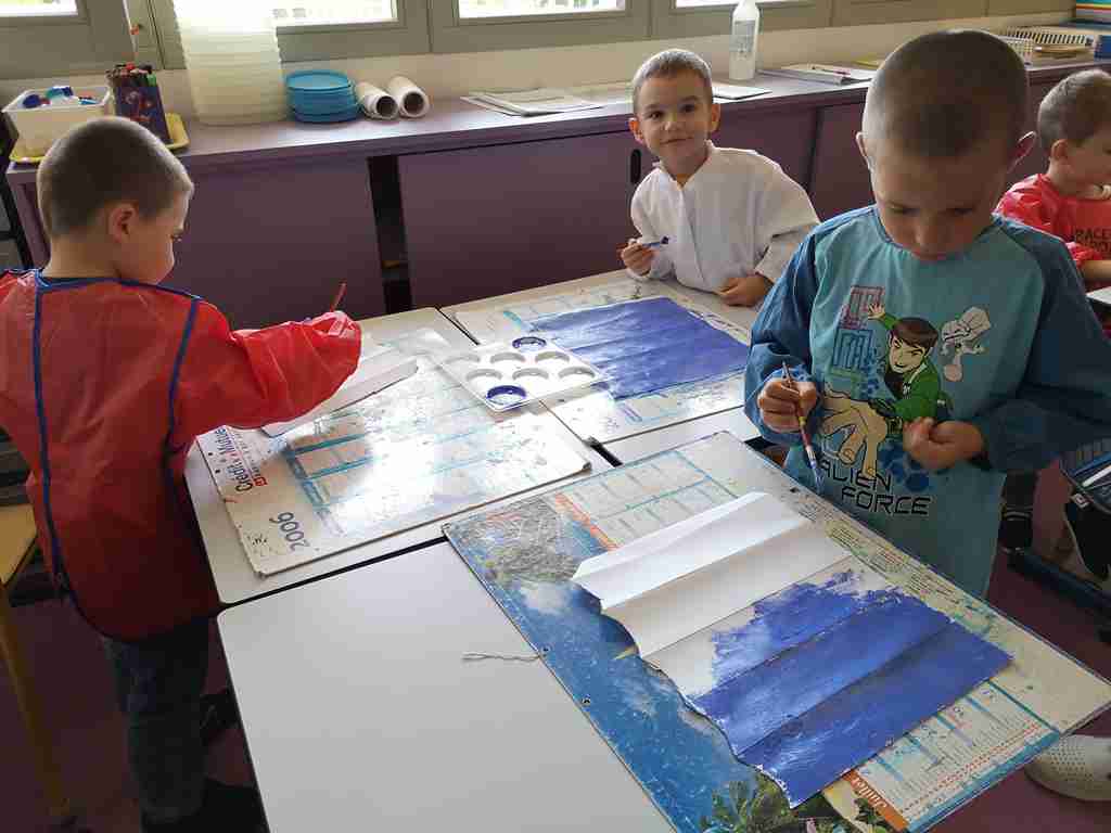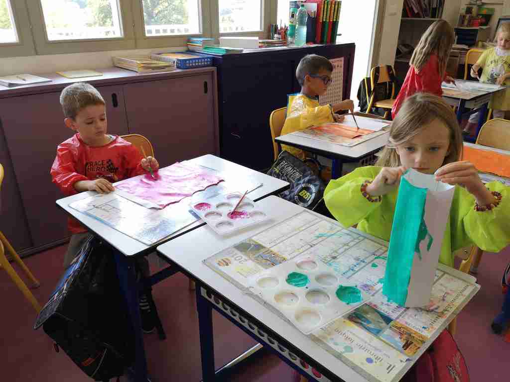 Avant les vacances d'automne, les élèves ont exposé leur nouveau décor à l'entrée de la classe. Cliquer sur chaque image pour la visualiser en pleine taille