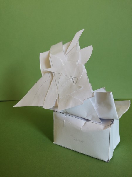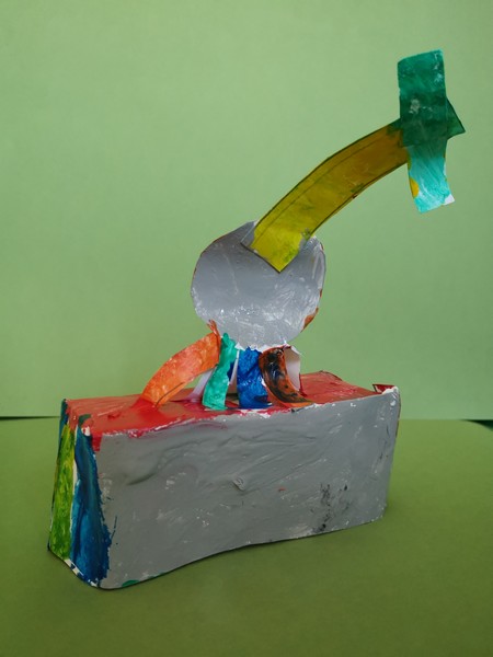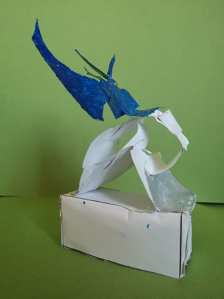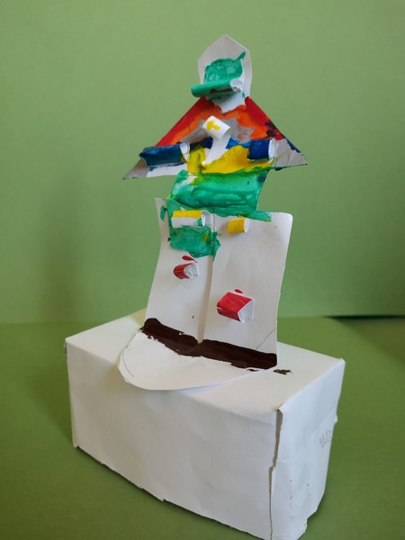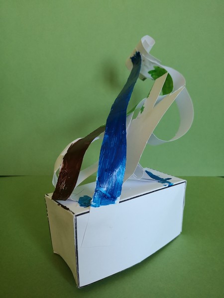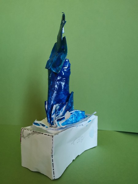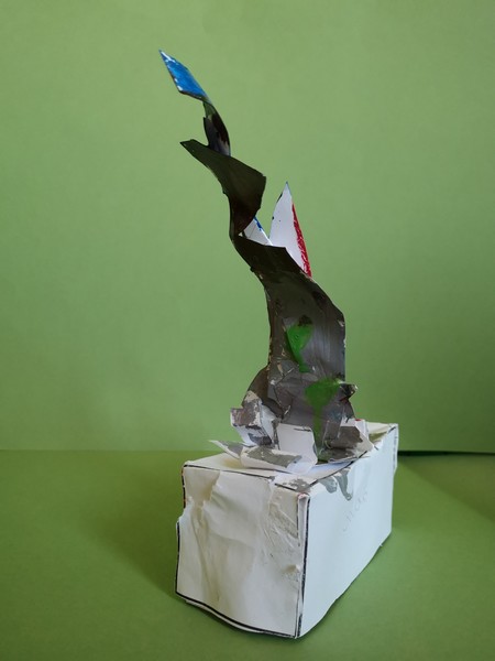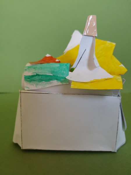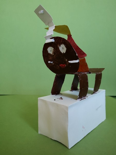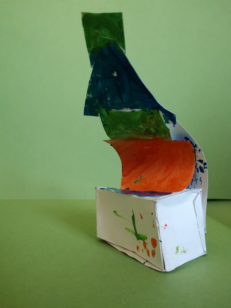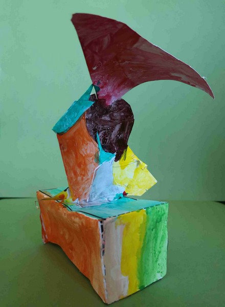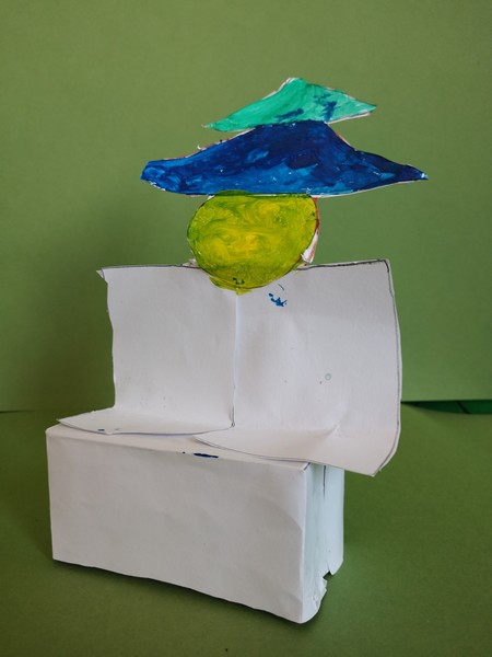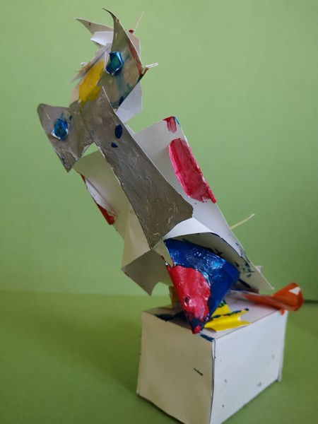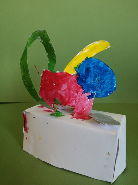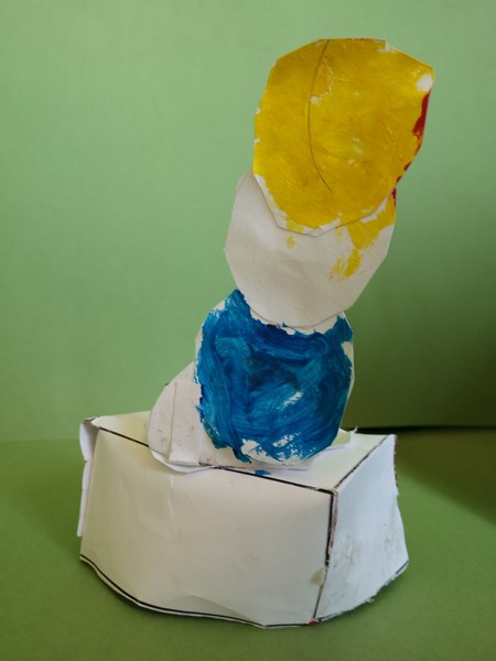 Un défi pour terminer l'année : réaliser une sculpture en papier plus grande qu'un feutre, collée sur un socle et qui tient toute seule debout sur le bureau. Elle doit également contenir au moins un disque. Pour faire cela chacun n'a eu qu'une feuille au format A4.