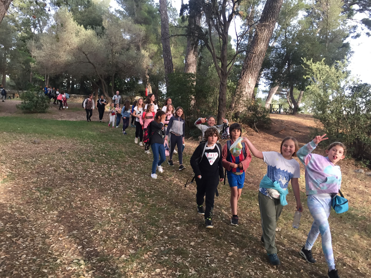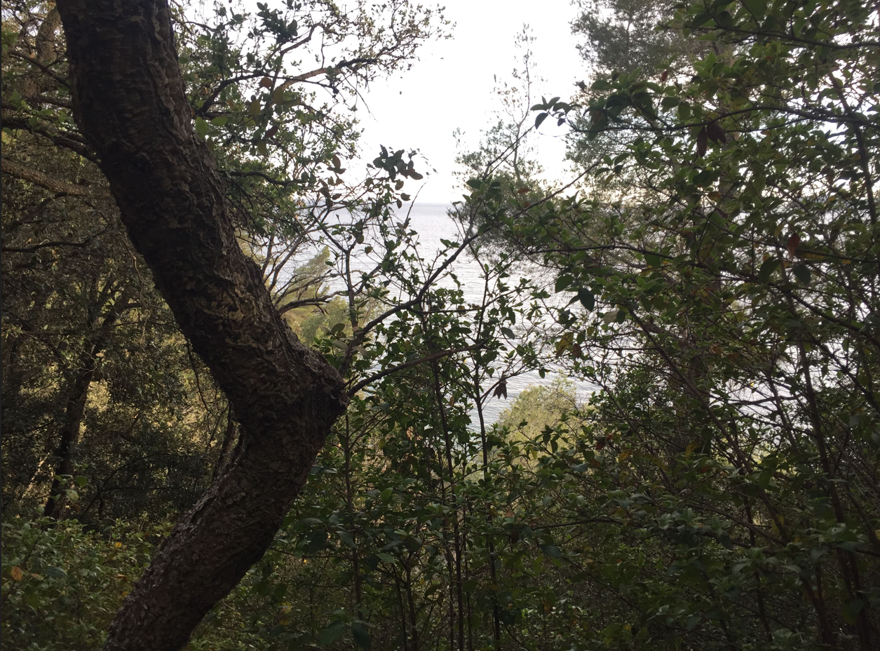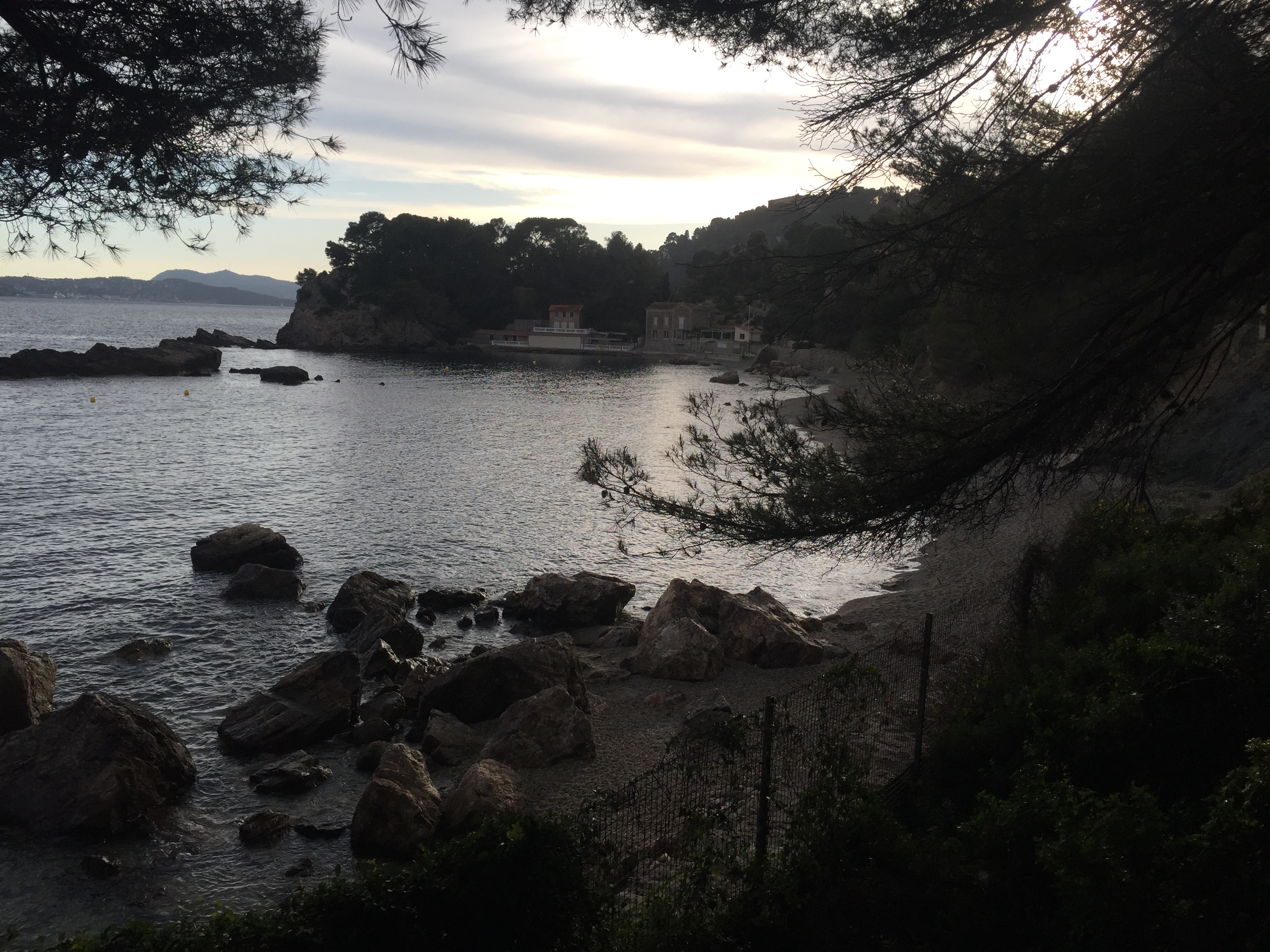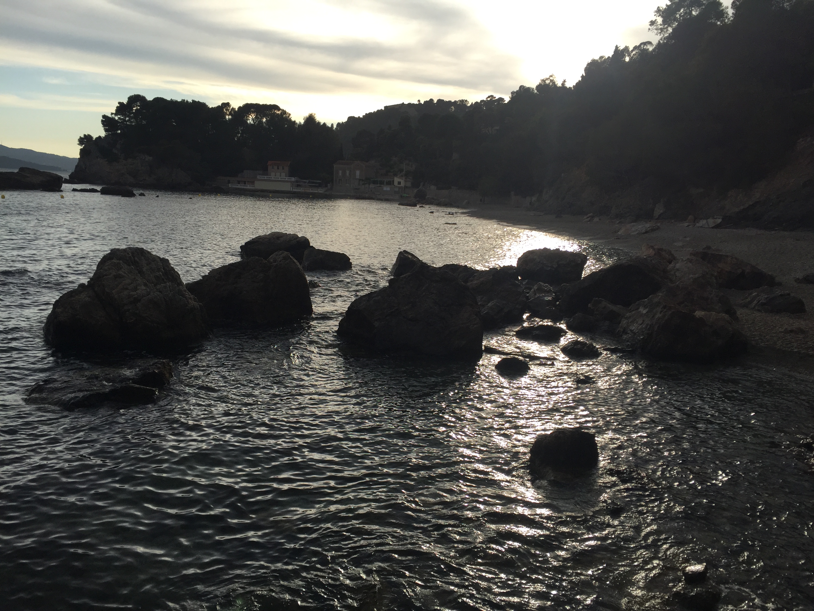 Nous avons ensuite traversé le parc du domaine, où se trouvent un filet de handball, mais surtout un joli petit brin de nature, avant de descendre jusqu'à la plage privée du domaine : « Vous avez trop bien choisi ! » « C'est magnifique ! » « Wouaaah ! » « La mer ! Regardez, il y a un énorme navire ! »