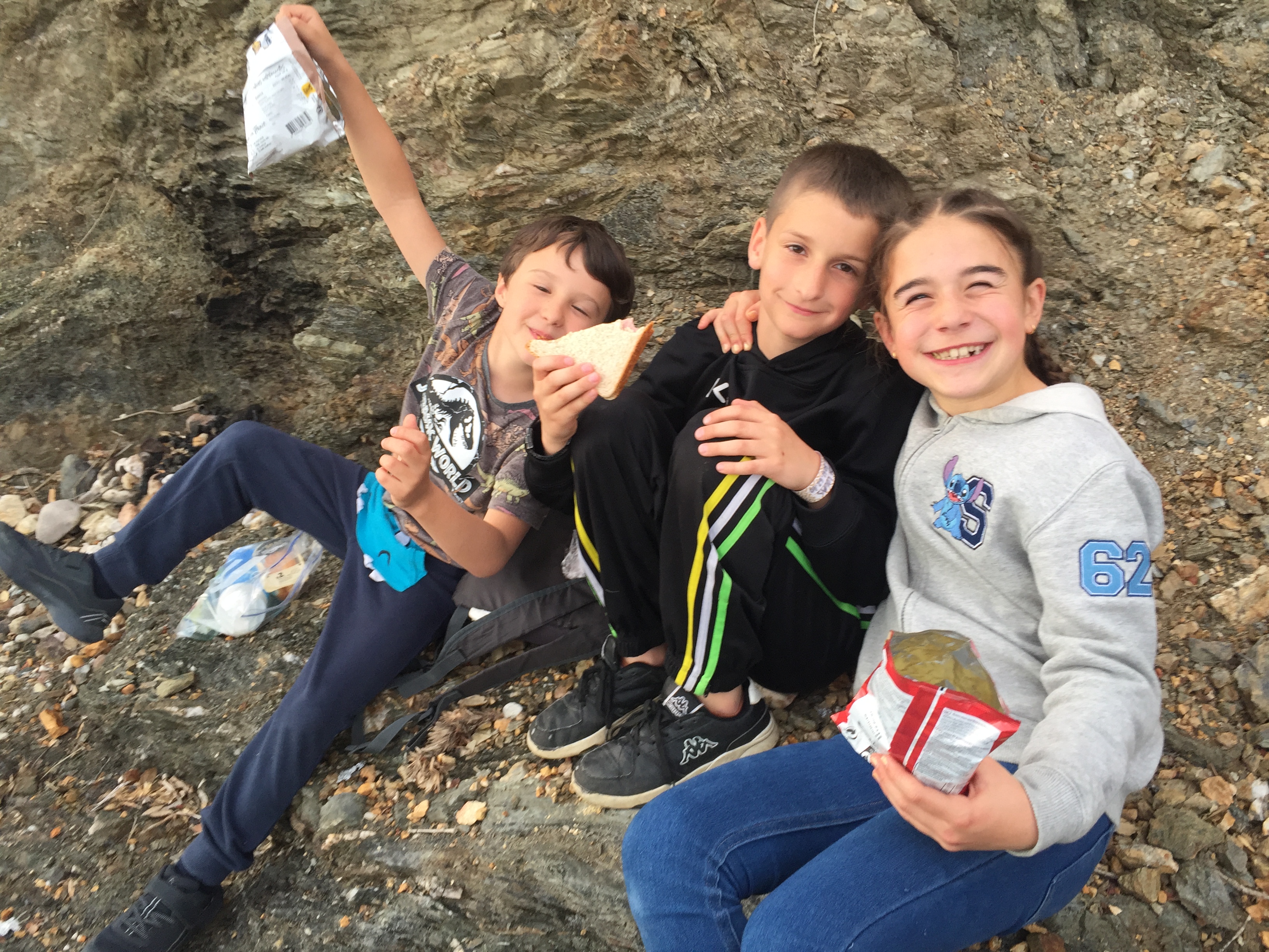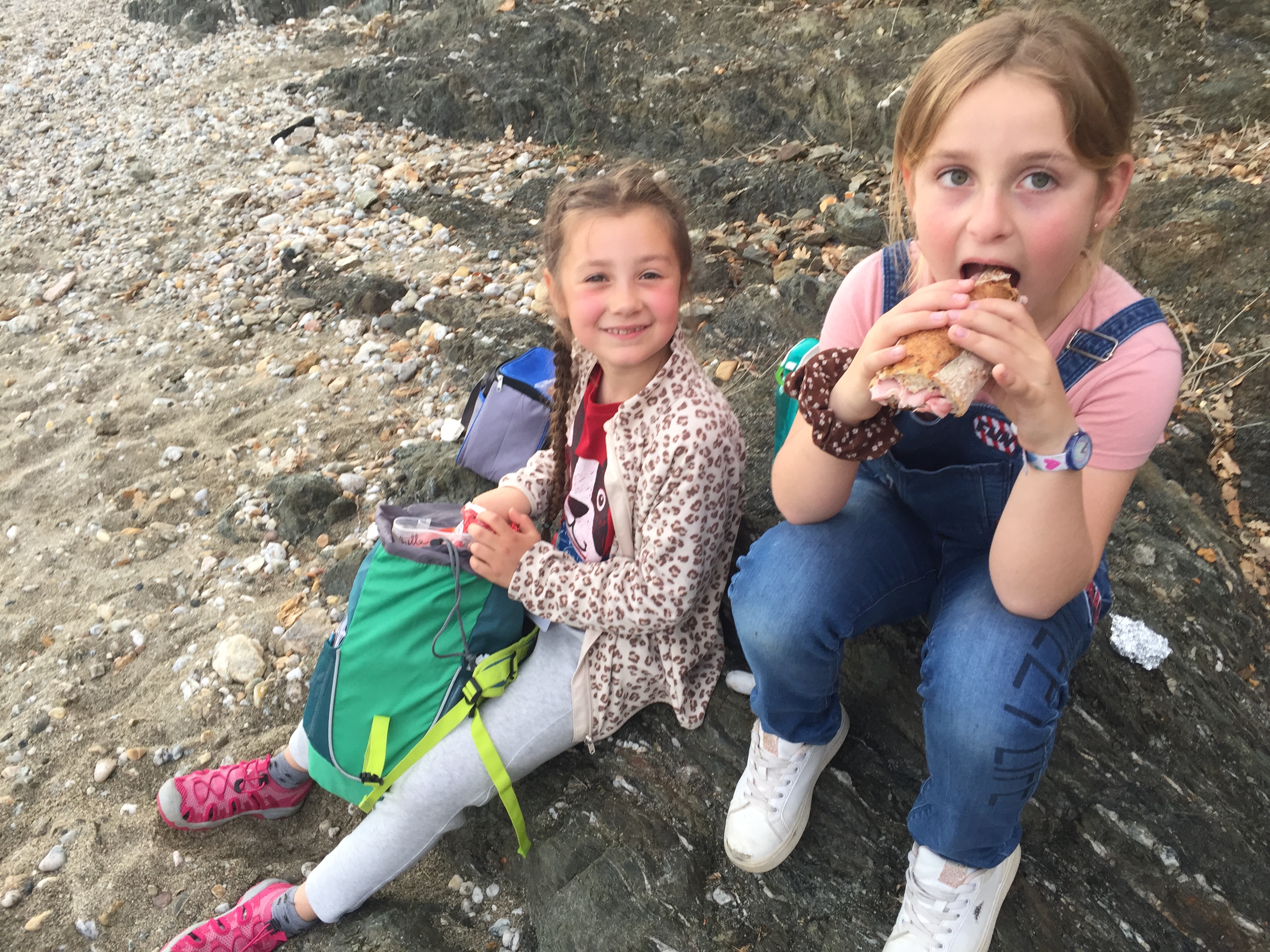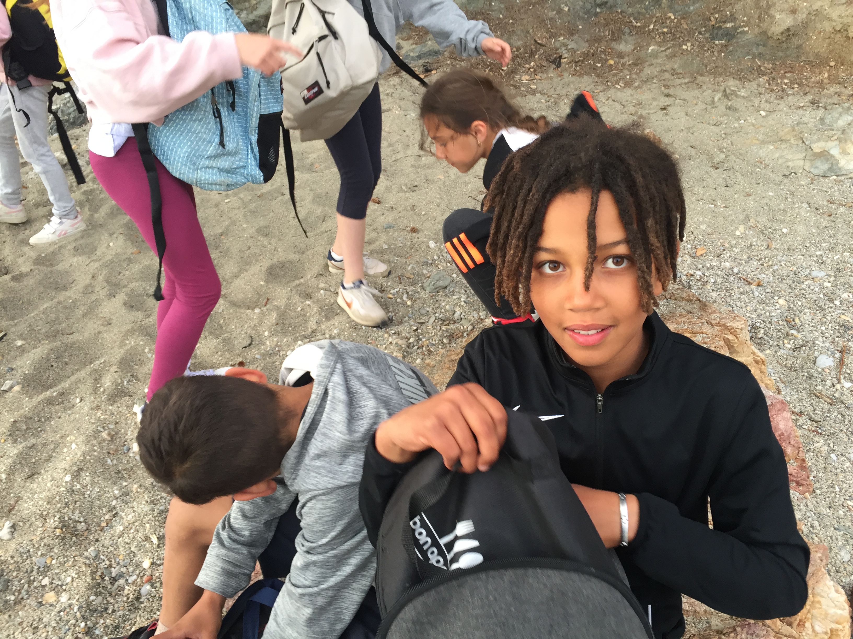 Le pique-nique sur la plage a été une belle surprise pour les enfants comme pour les accompagnateurs, mais aussi pour la mouette qui a profité que les enfants se soient un peu éloignés pour fondre sur le paquet de chips de Carla ! Rien qu'un peu d'acrobatie n'a permis de réparer, heureusement : la plage sera aussi propre après notre passage qu'avant !
