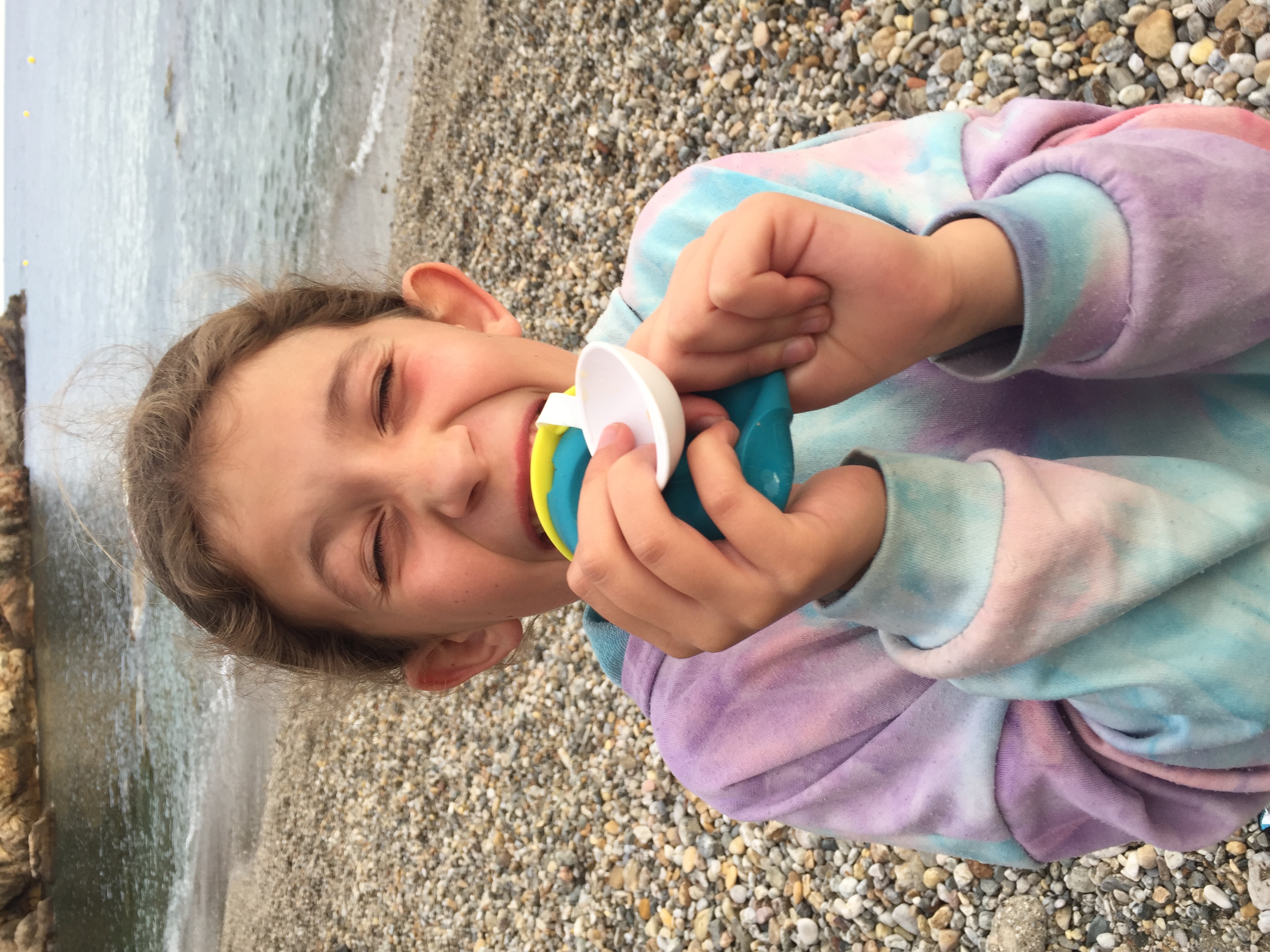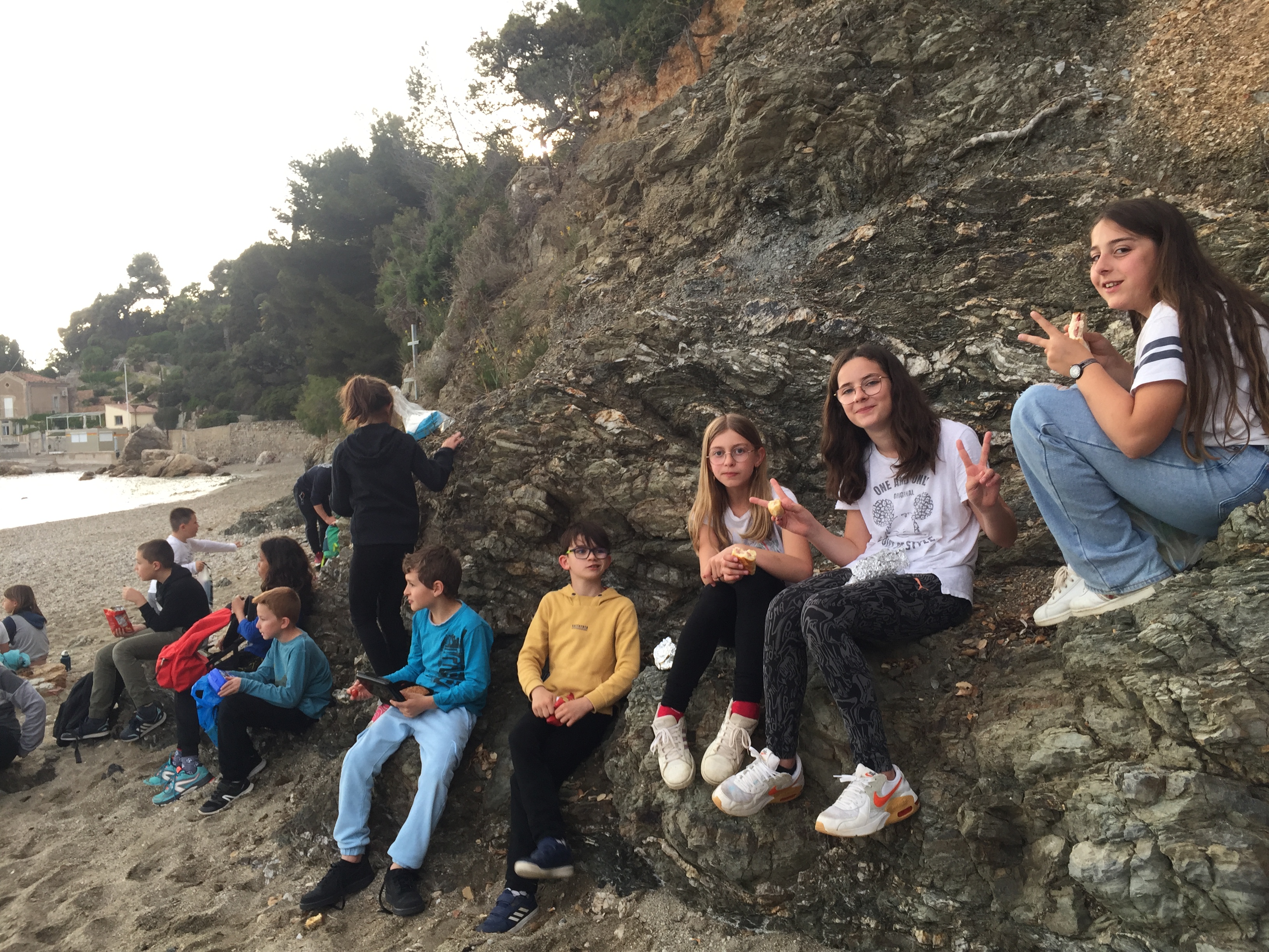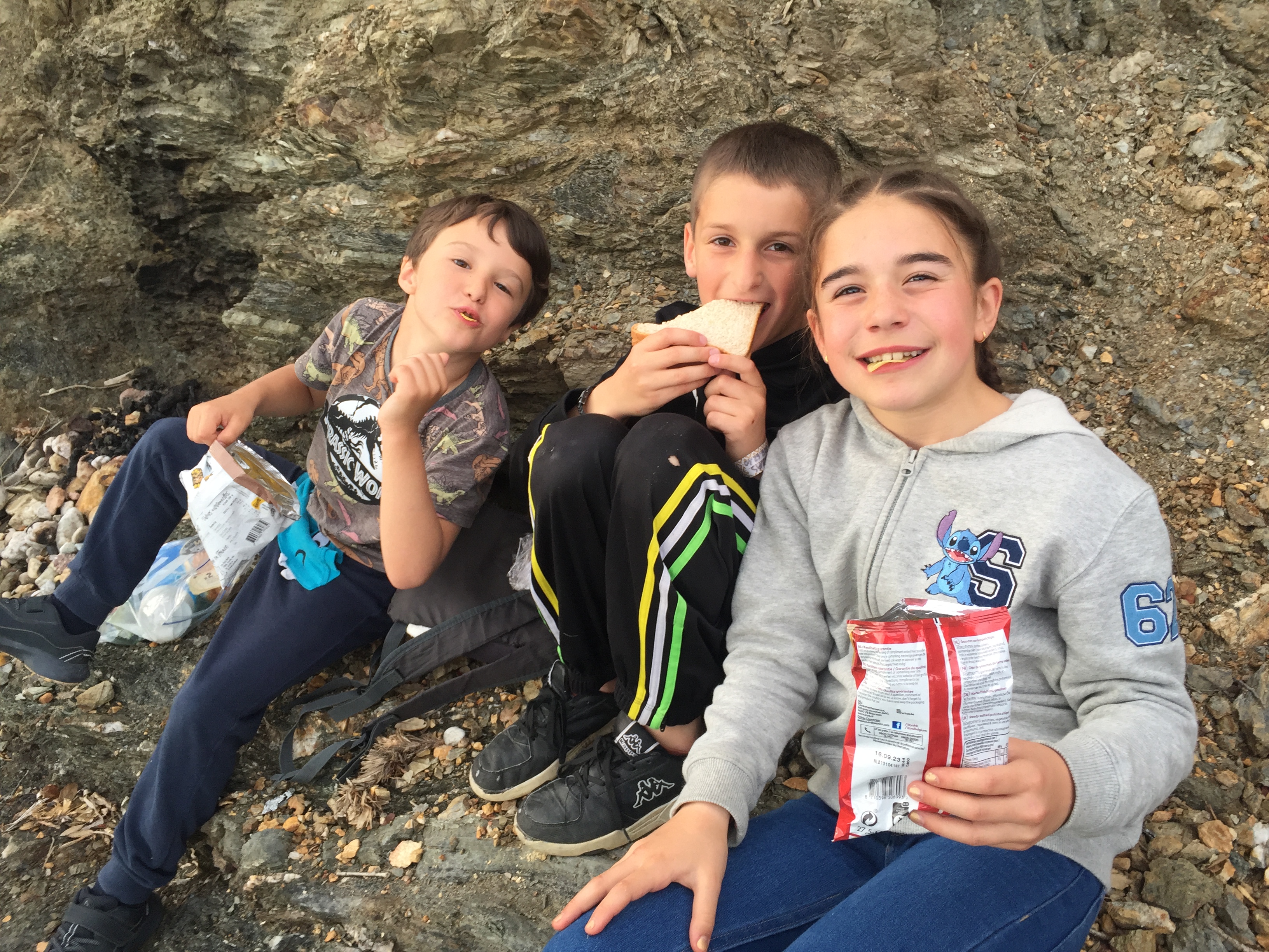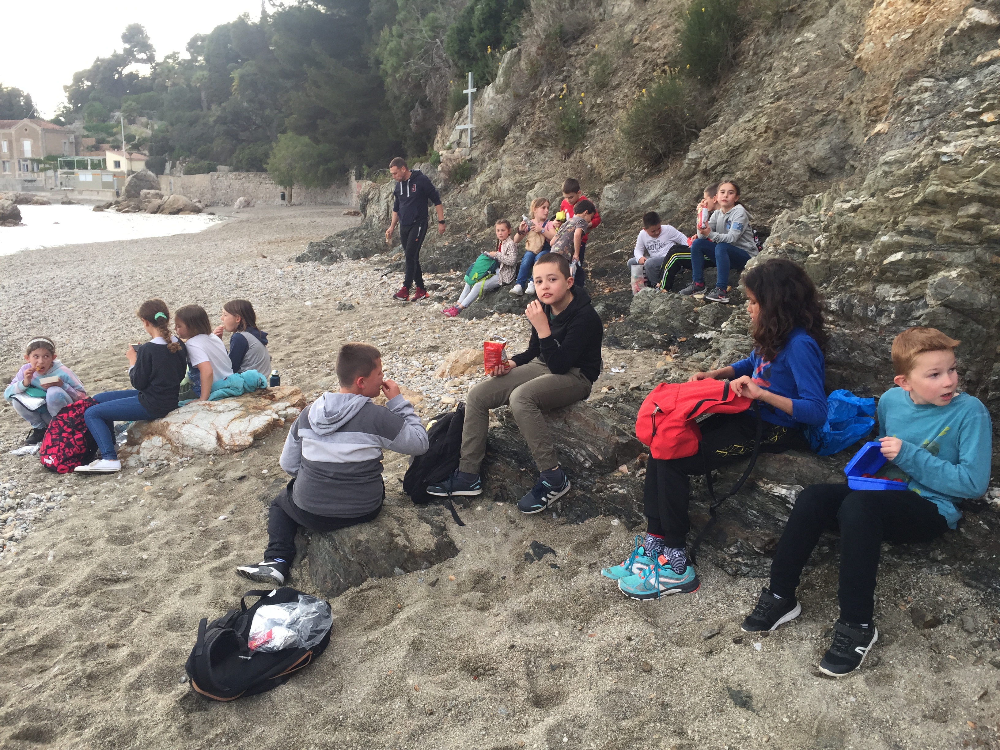 Le pique-nique sur la plage a été une belle surprise pour les enfants comme pour les accompagnateurs, mais aussi pour la mouette qui a profité que les enfants se soient un peu éloignés pour fondre sur le paquet de chips de Carla ! Rien qu'un peu d'acrobatie n'a permis de réparer, heureusement : la plage sera aussi propre après notre passage qu'avant !