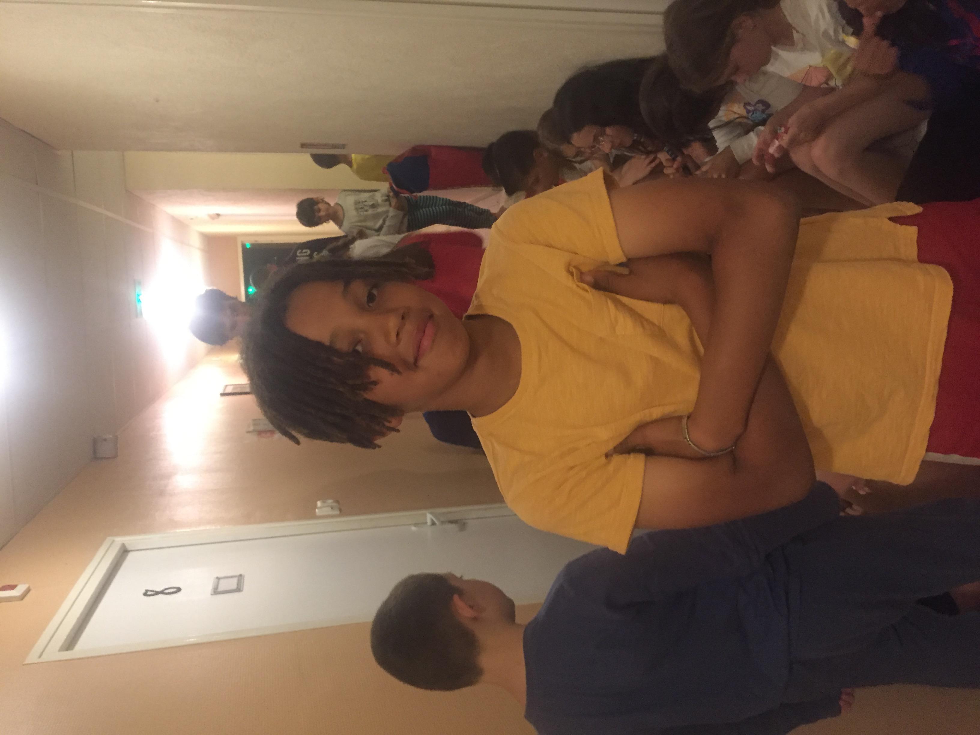 Une fois tout le monde prêt et avant la veillée, une autre surprise : rassemblement général dans le couloir ! Le moment préféré de Tiago, notre grand timide, qui a eu le bonheur de la chanson d'anniversaire, des cris de joie et de la musique ! Plus si timide que ça, d'ailleurs, au vu de la petite danse qu'il nous a improvisée au son de la musique diffusée par Jordan.