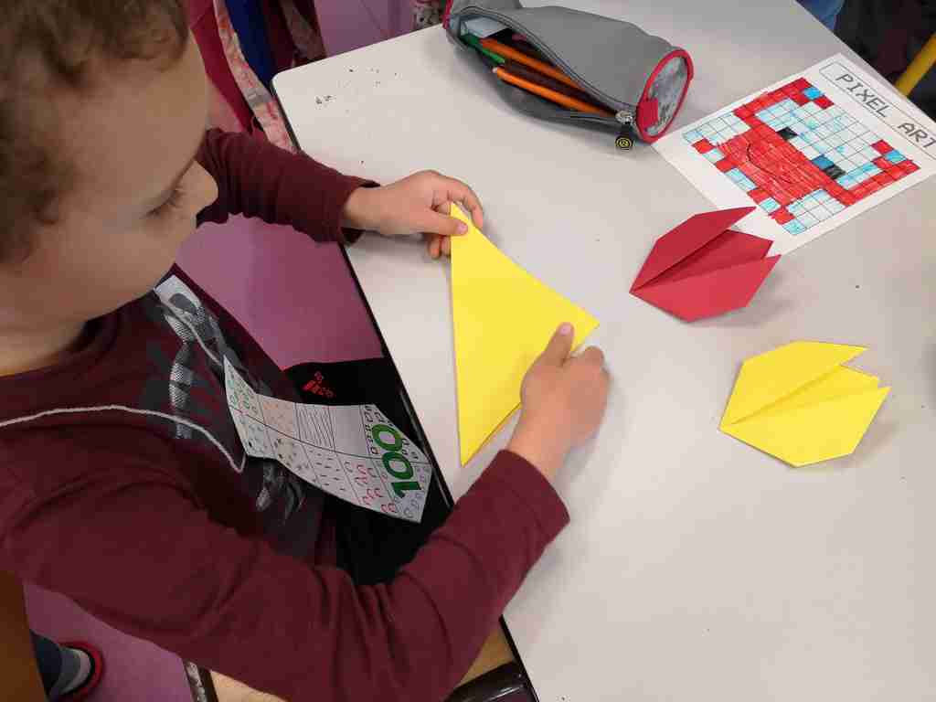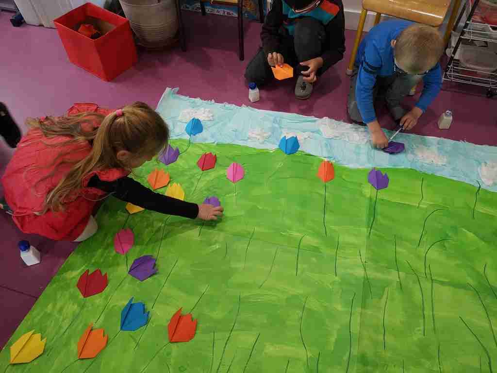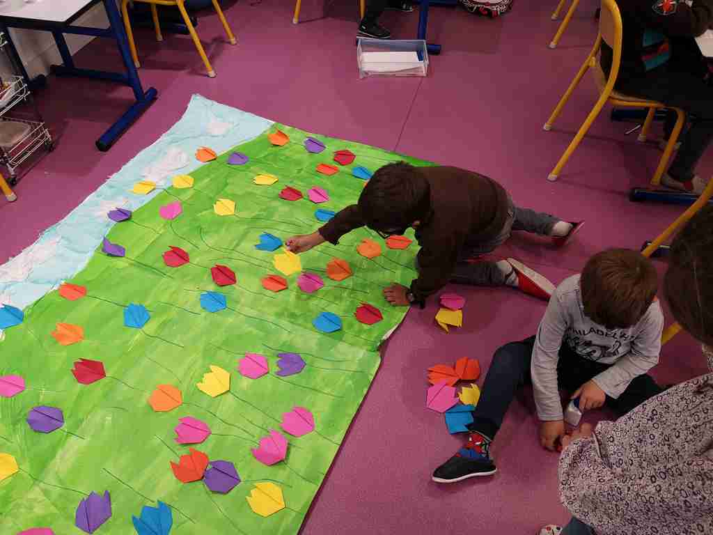 - Fabriquer 100 tulipes en origami afin de réaliser une fresque printanière fleurie.