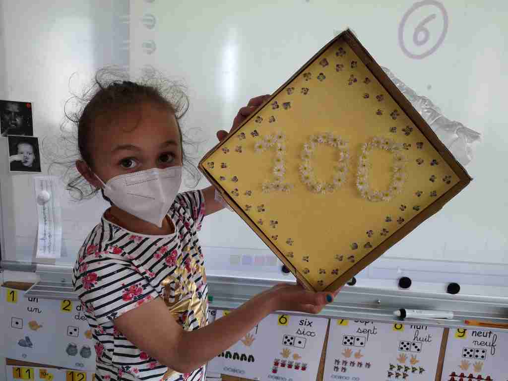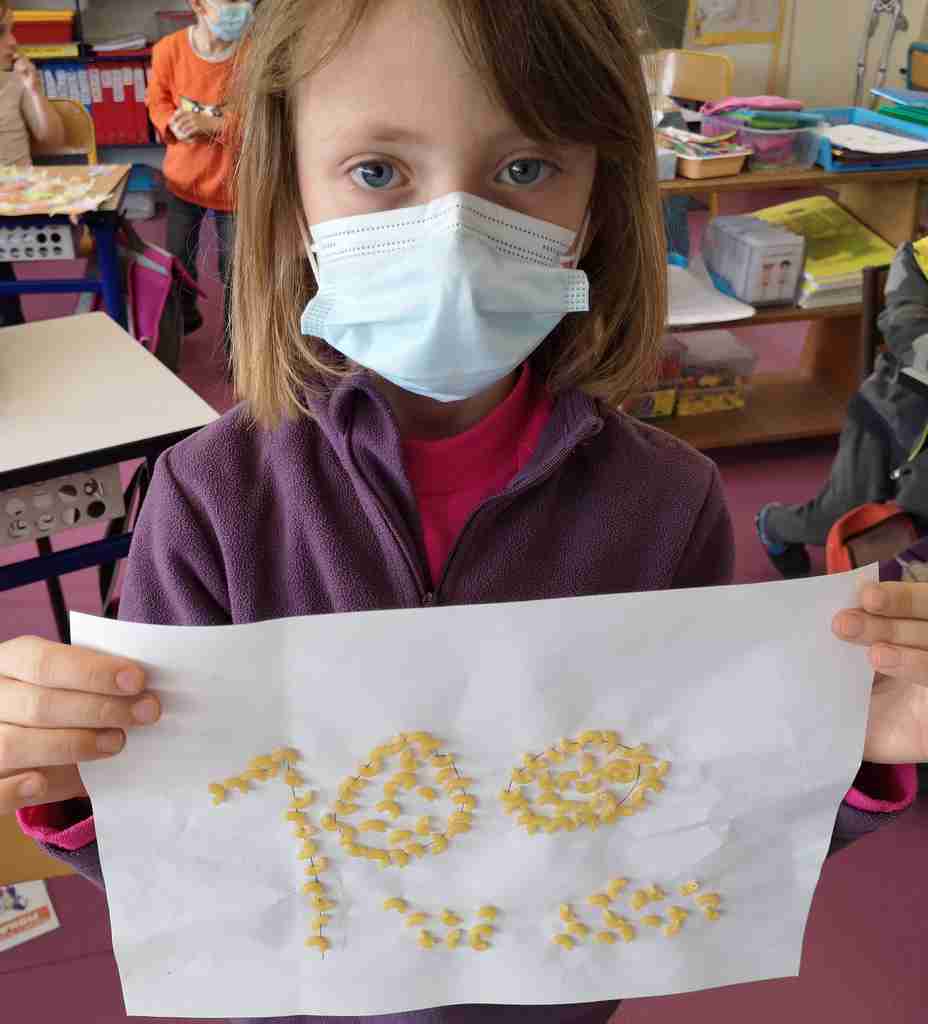 Depuis le 2 septembre 2020, les élèves comptent les jours d'école. Le 100e jour de classe devait arriver mardi 6 avril. Le confinement a fait que cela a été un jour de classe à la maison qui n'a pas pu être célébré. C'est donc au retour des vacances de printemps, le lundi 26 avril, qu'a été fêté le 100e jour à l'école.