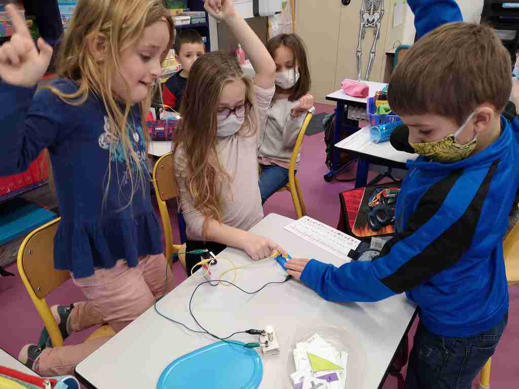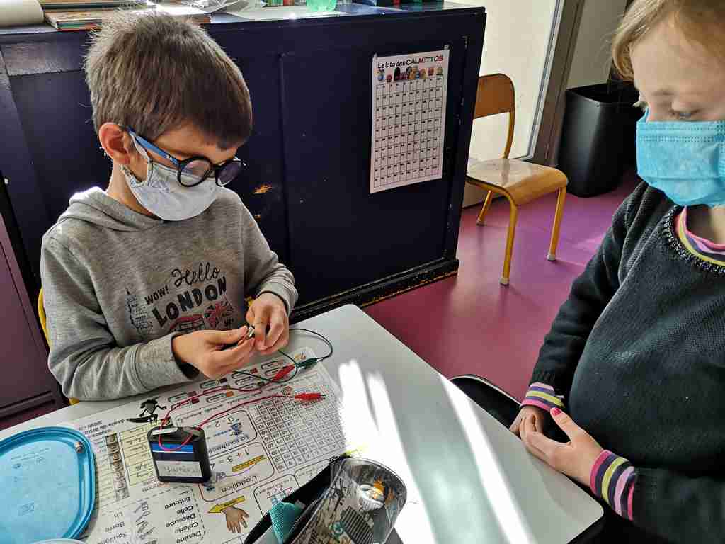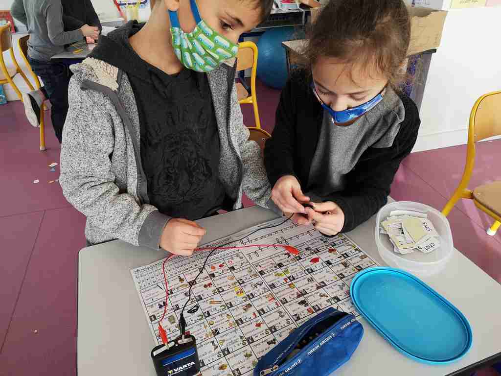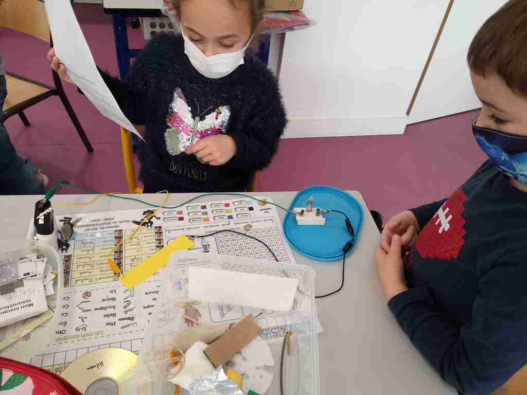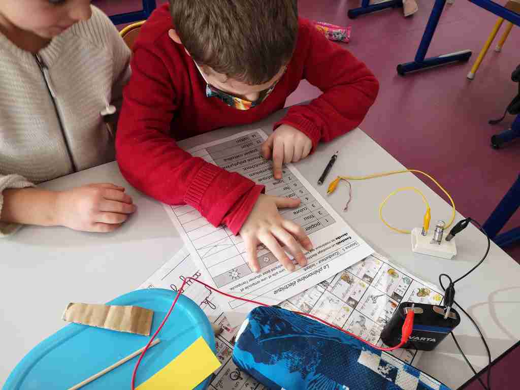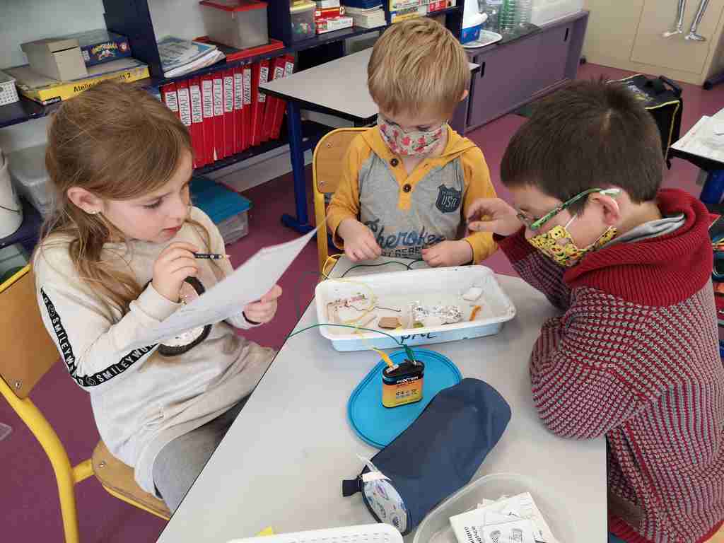 Ils ont cherché comment allumer une ampoule avec une pile, puis loin de la pile à l'aide de fils électriques, construits des circuits électriques en ajoutant un interrupteur et testé la conductibilité des matériaux en les classant isolants ou conducteurs.