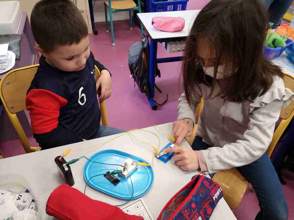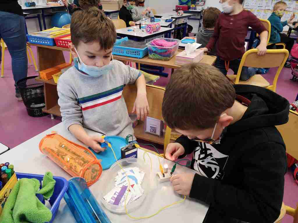 Au cours de cette période de classe, les élèves de GS CP ont expérimenté le phénomène électrique.