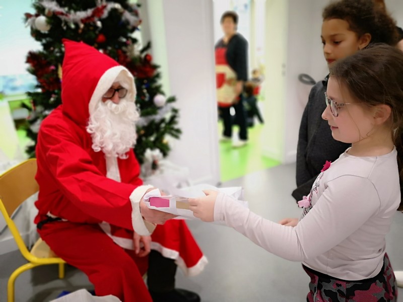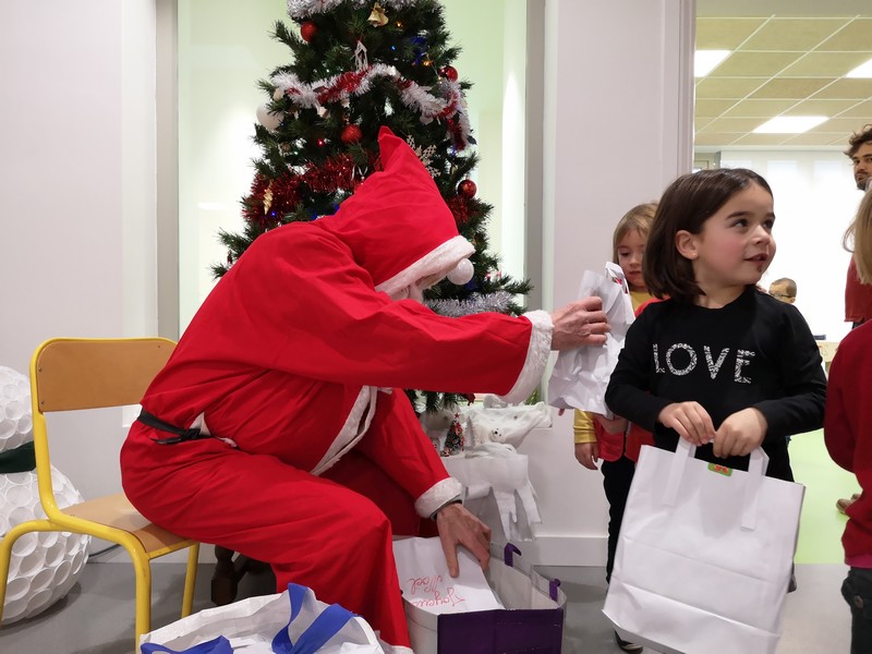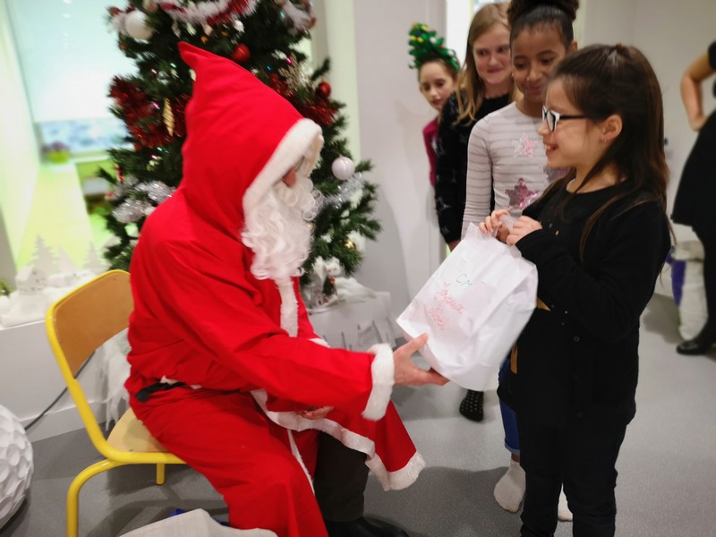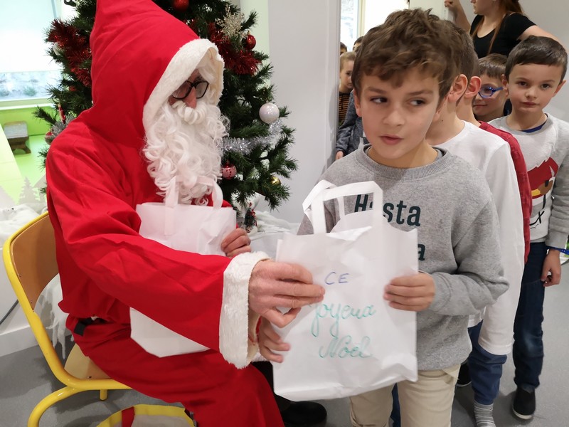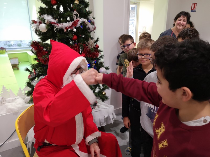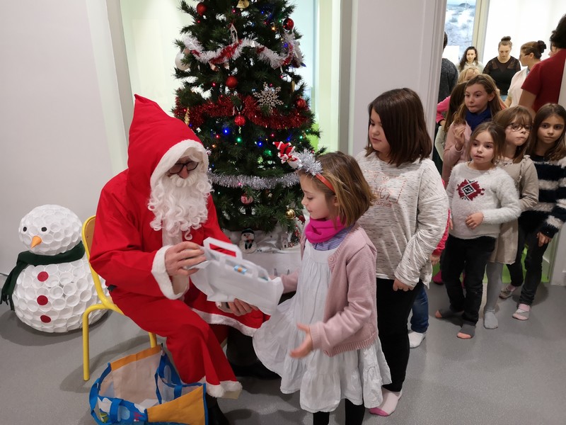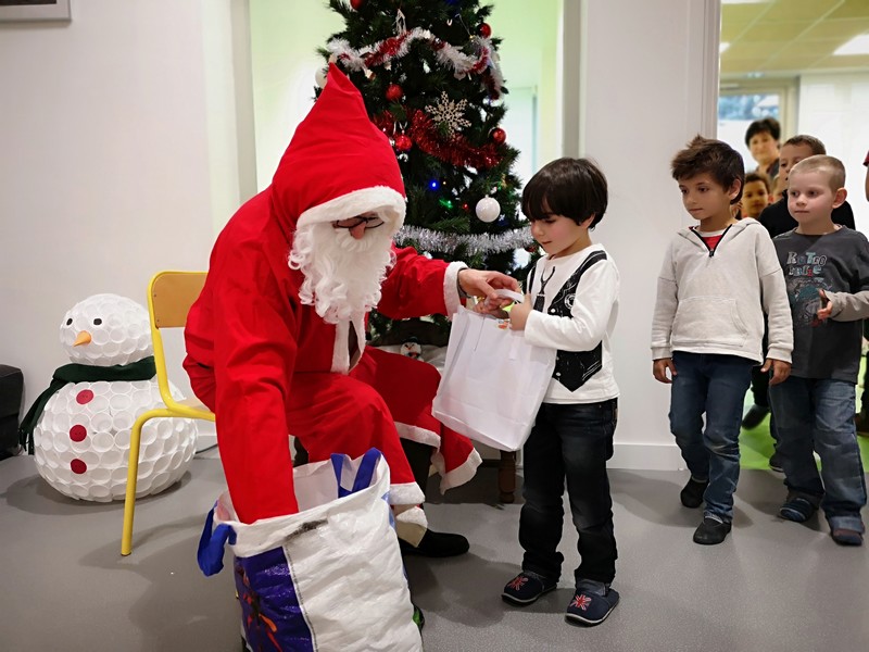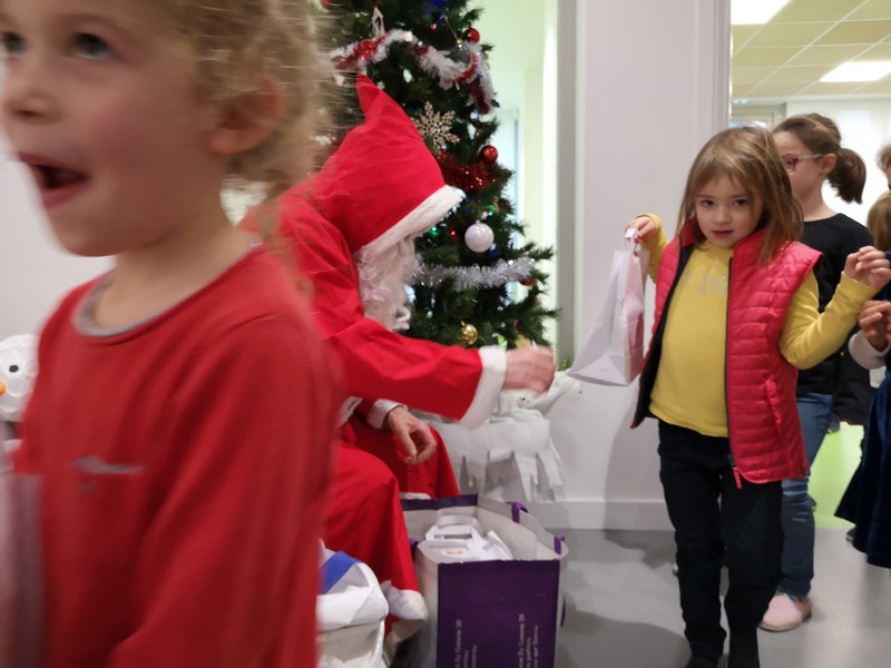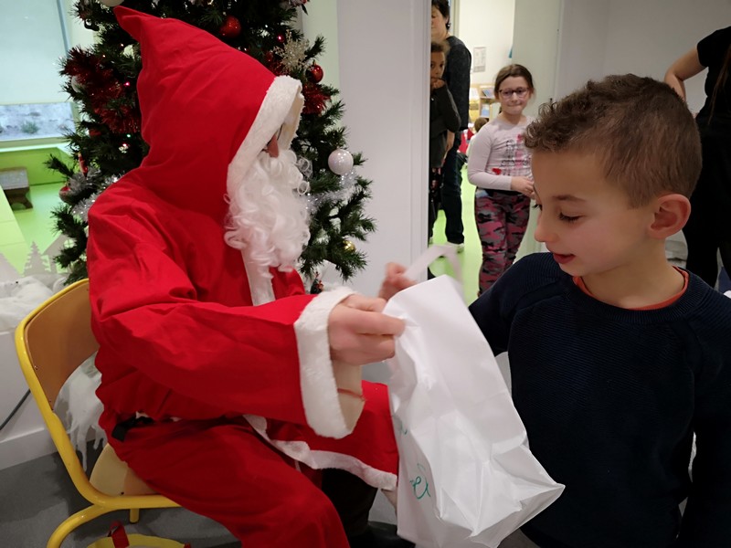 Après le repas tous les élèves ont accueilli le père Noël dans la bibliothèque. Ils lui ont offert ainsi qu'aux cantinières deux chants préparés pour l'occasion.