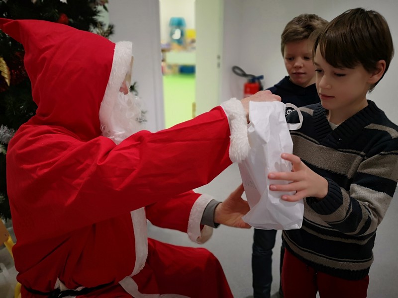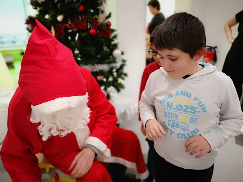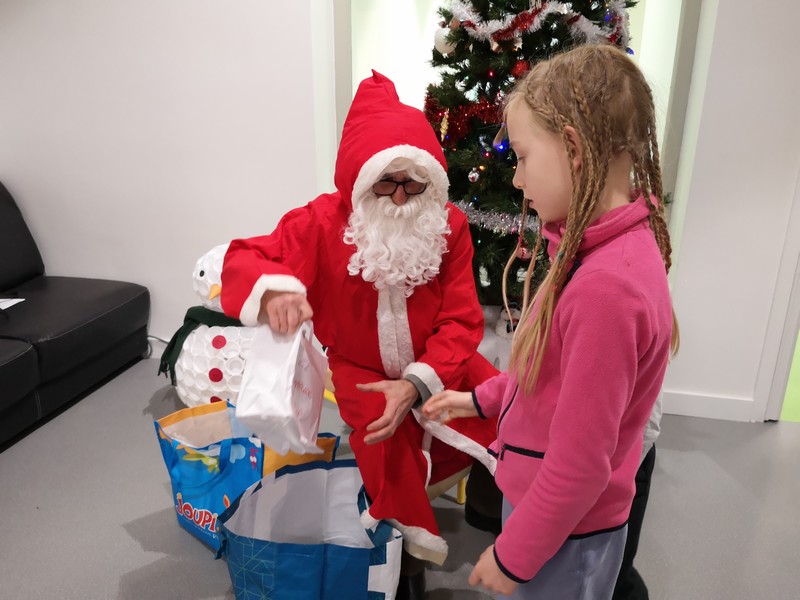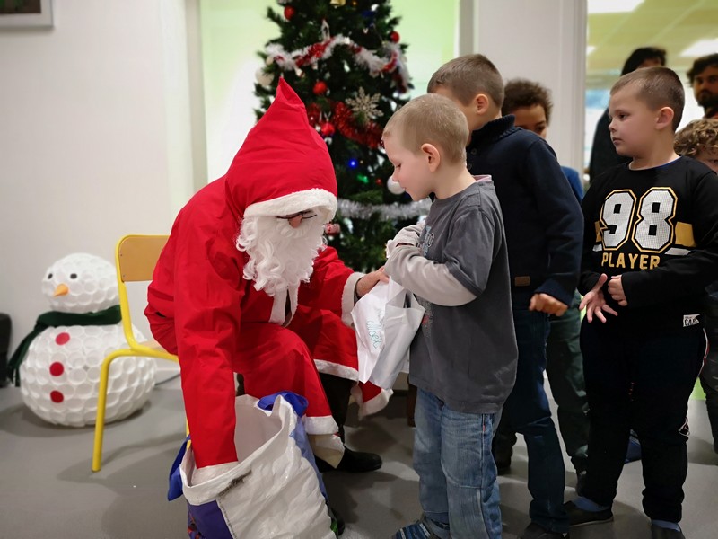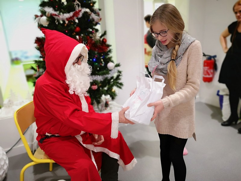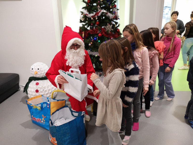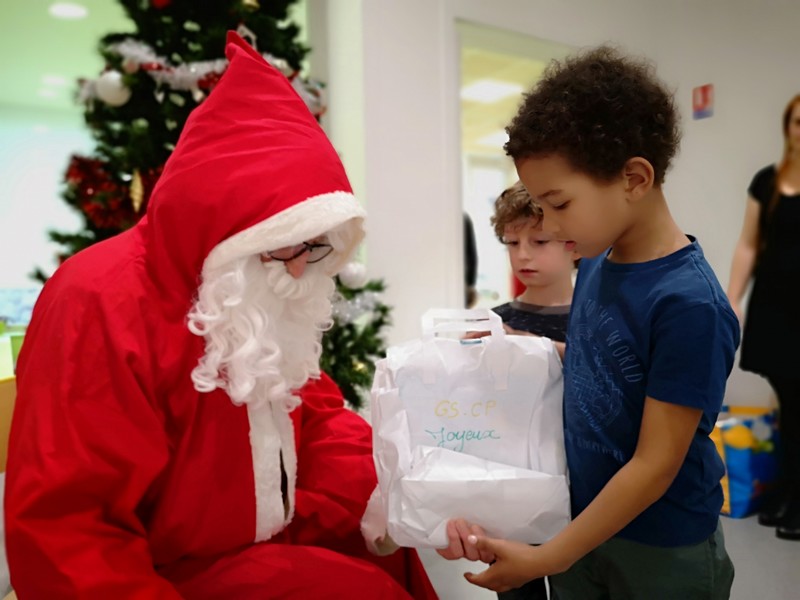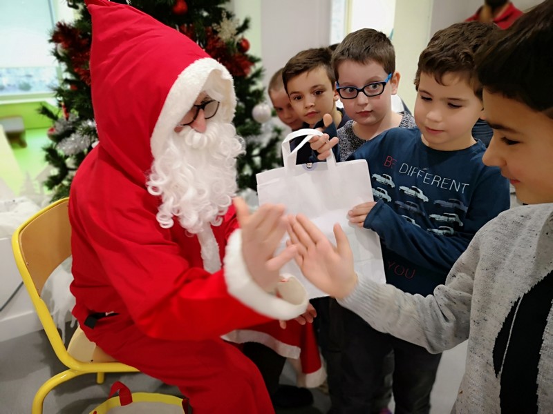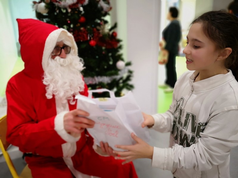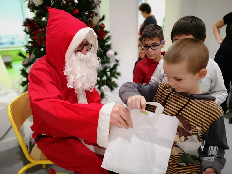 Après le repas tous les élèves ont accueilli le père Noël dans la bibliothèque. Ils lui ont offert ainsi qu'aux cantinières deux chants préparés pour l'occasion.