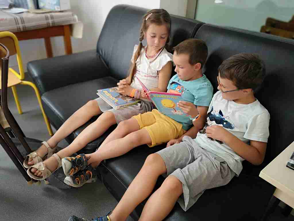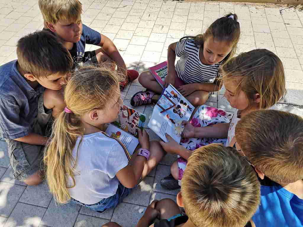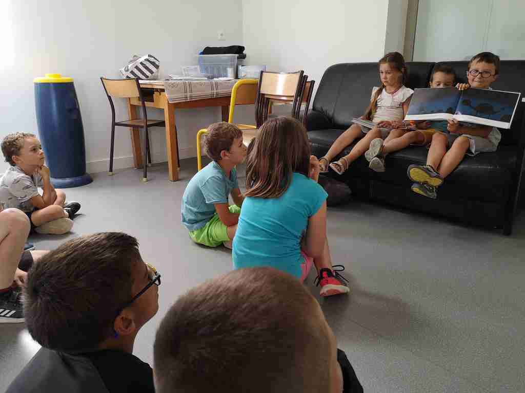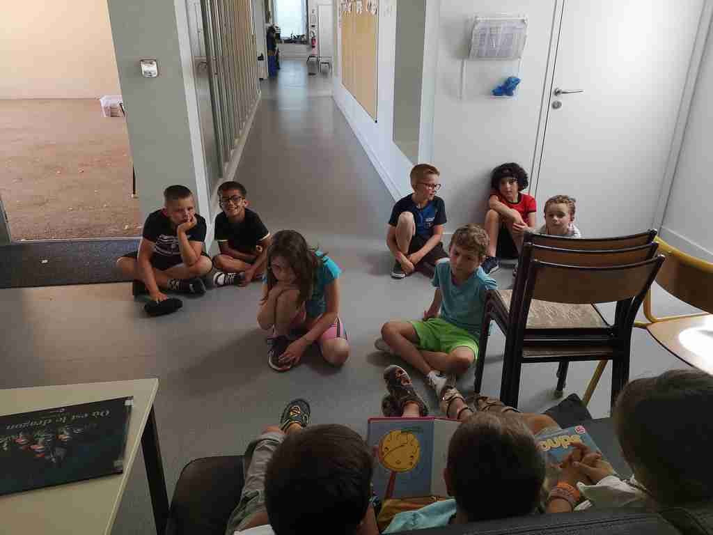 A la veille des vacances, des petits moments de lectures offertes entre élèves des classes de GS CP et CE se sont déroulés en divers lieux ombragés de l'école. Beaucoup de plaisirs pour les auditeurs et de fiertés pour les lecteurs...