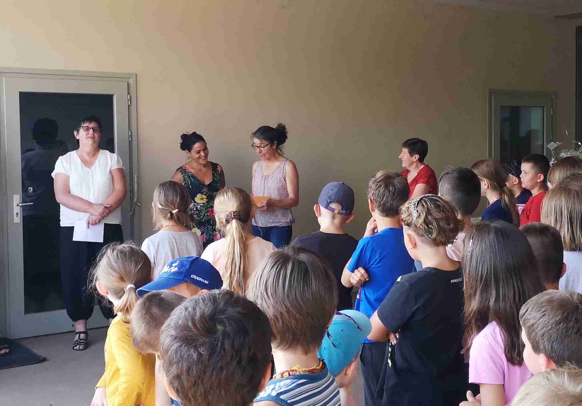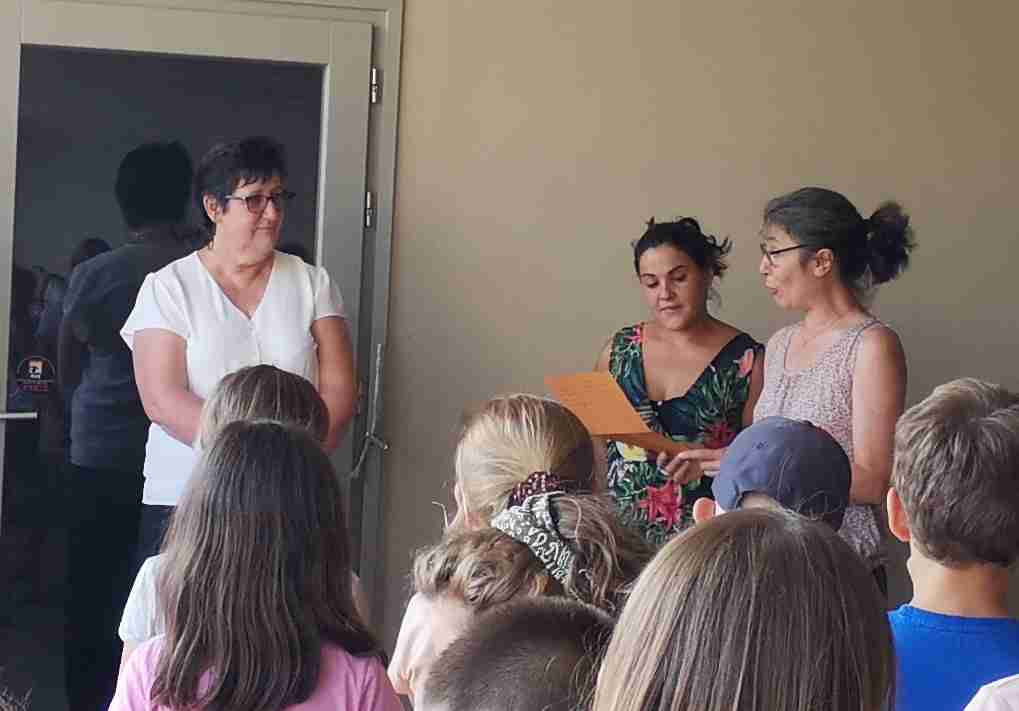 En cette fin de mois de juin 2023, les élèves, les enseignants, le personnel de la cantine, l'association de la cantine, le sou des écoles et les familles se sont réunis au cours d'un moment convivial pour dire un grand "MERCI !" à Annie. Elle a été présente auprès des élèves dans la classe de GS CP, dans la bibliothèque et à la cantine pendant ces 16 dernières années scolaires. Elle sera à la retraite bien méritée au mois de septembre.