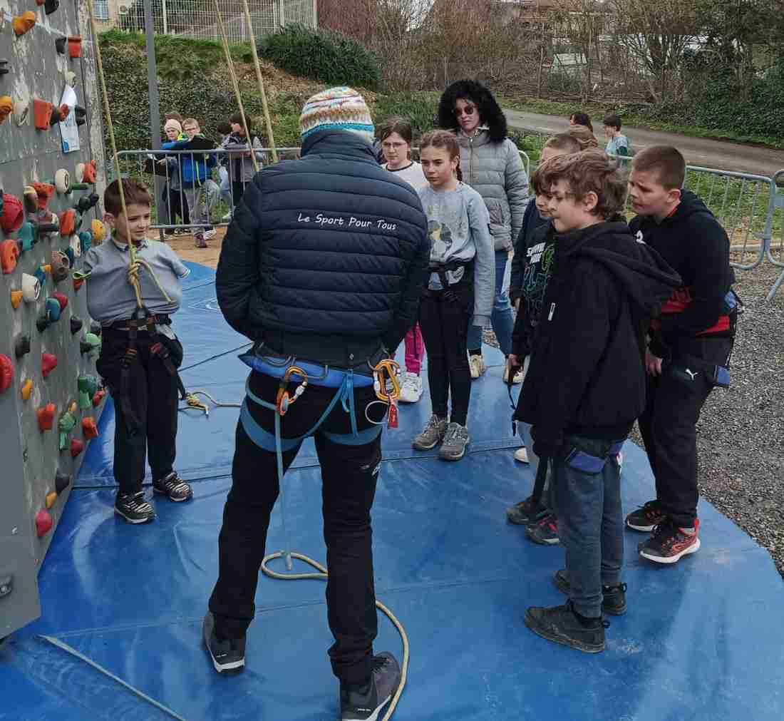 Les élèves ont été initiés à l'escalade au cours de 6 séances avec Pierre-Marc, éducateur sportif spécialisé de l'association AMR 38. Merci au Sou des écoles qui a financé ce projet et aux parents qui ont participé à l'encadrement.