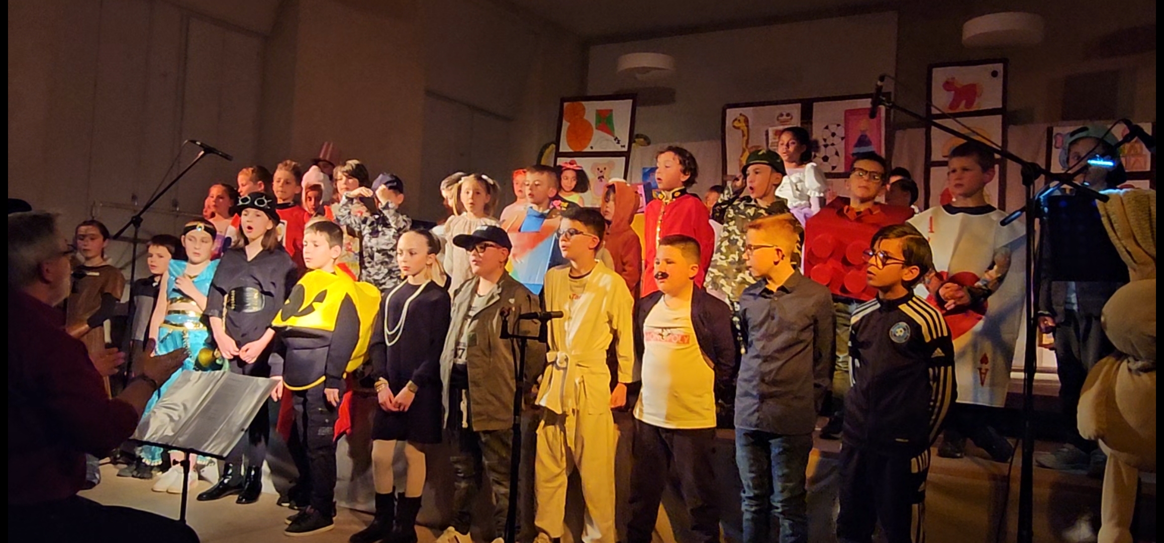 La salle ménestrel du château était pleine d'un public chaleureux, le vendredi 28 mars 2025, afin d'assister au spectacle musical de l'école.